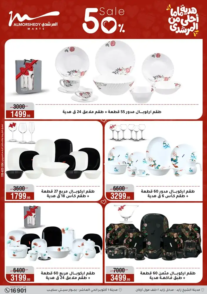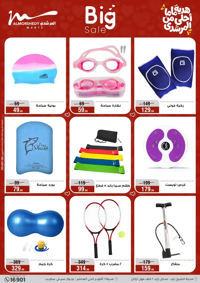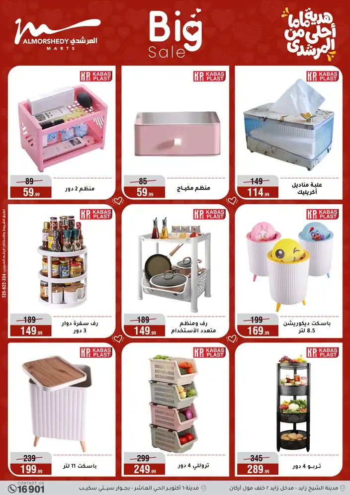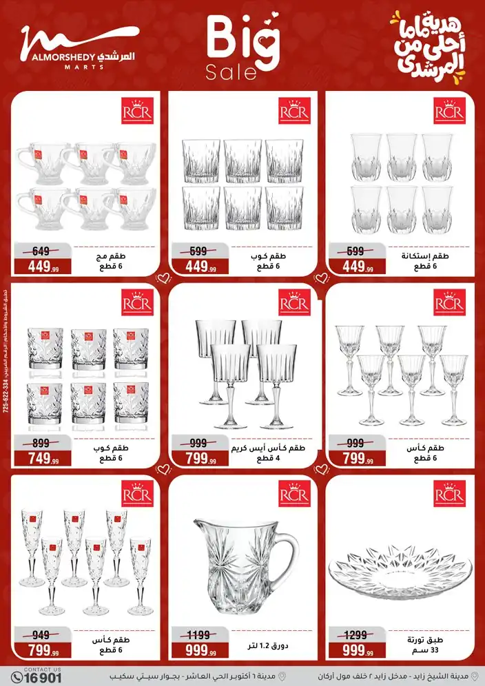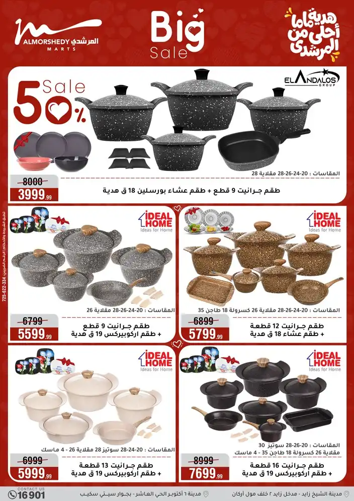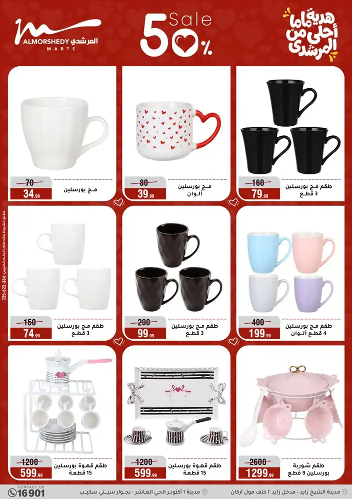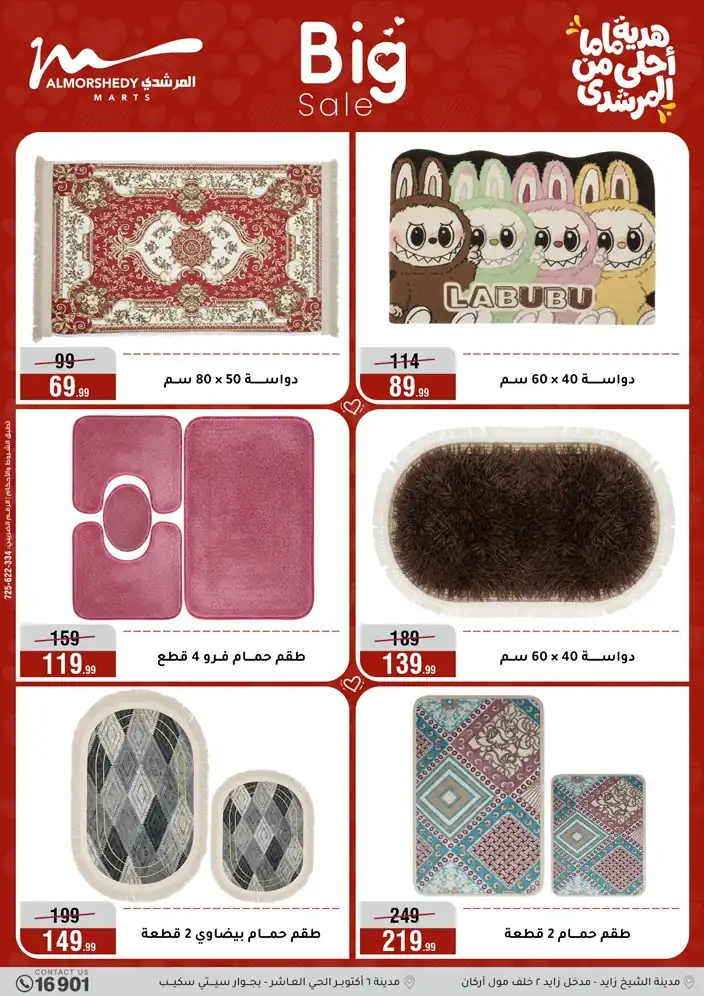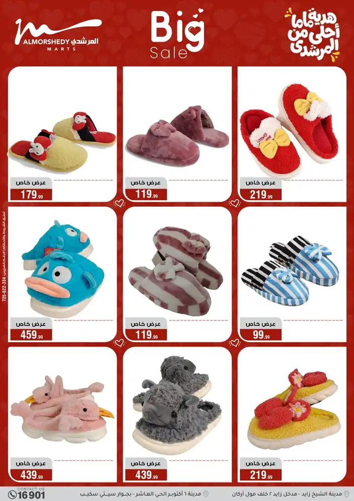 عروض جديدة من أسواق المرشدي  مع اكبر مهرجان للتخفيضات في مصر خصومات حتى 70%  وقسط براحتك بدون فوائد بأسعار العروض المخفضة على 12 شهر لحاملي بطاقة ائتمان CIB أو قسط براحتك مع VALU بدون مقدم حتى 60 شهر أو بدون مقدم وبدون فوائد مع نظام هاتريك وكمان النقل مجاني للقاهرة والجيزة والقليوبية على قسم الأجهزة الكهربائية والموبيليا والمراتب ( تطبق شروط المكان ) خصومات على جميع الأقسام أدوات منزلية – اجهزة كهربائية – مفروشات – موبيليا – نجف – سجاد – مراتب – ملابس رجالي وحريمي وأطفالي ومستلزمات ولعب الأطفال وجاليري وأقسام تانية كتير استمتع بالتسوق في أسواق المرشدي مع أكتر من 12 قسم و أكثر من 10,000 منتج يعني كل اللي بتحلم بيه عند المرشدي هتلاقيه