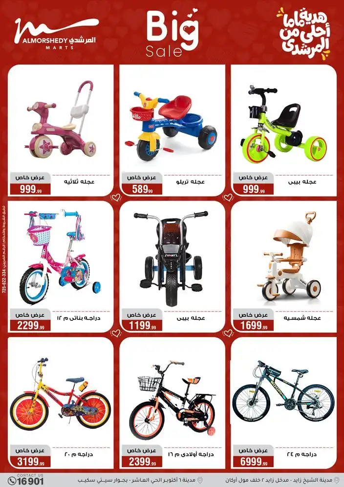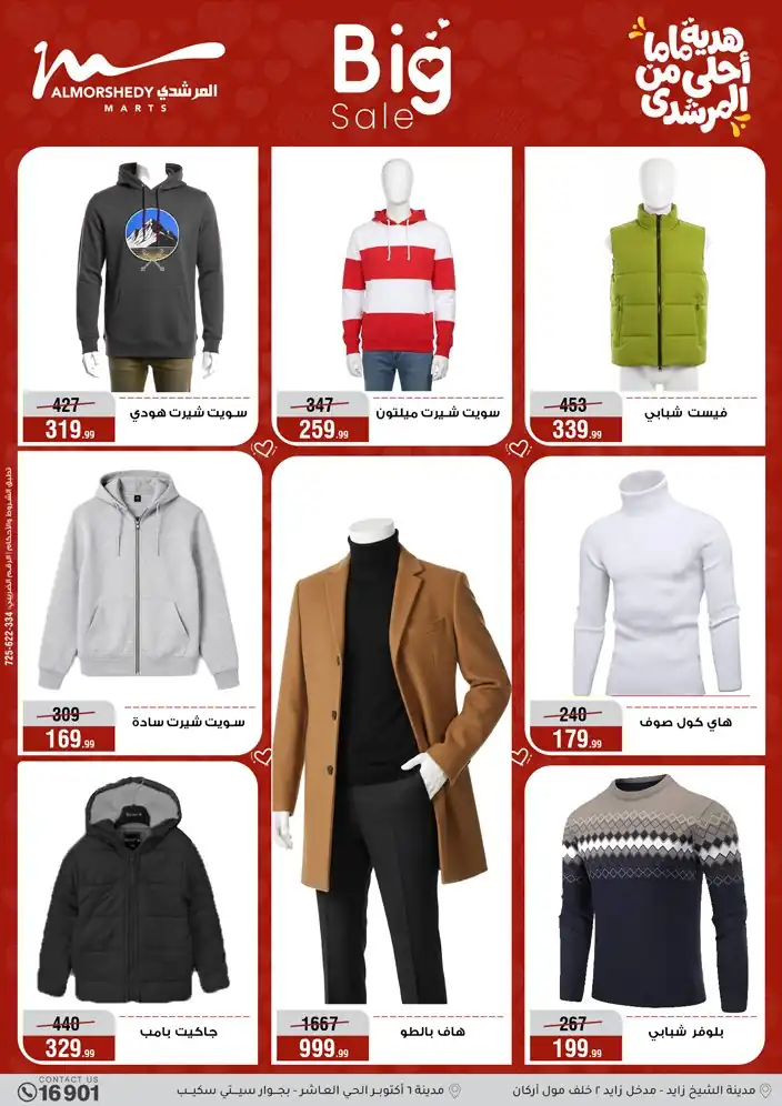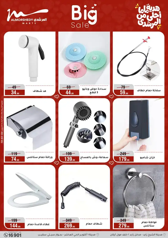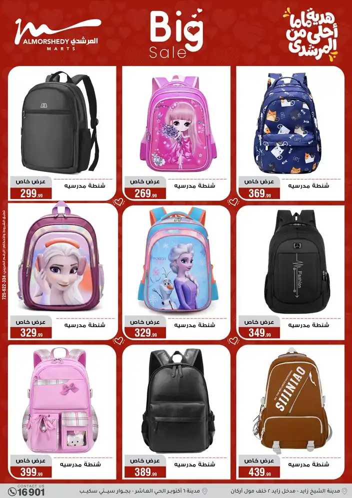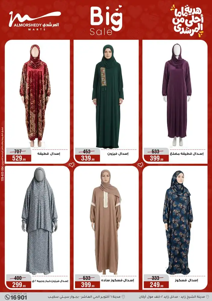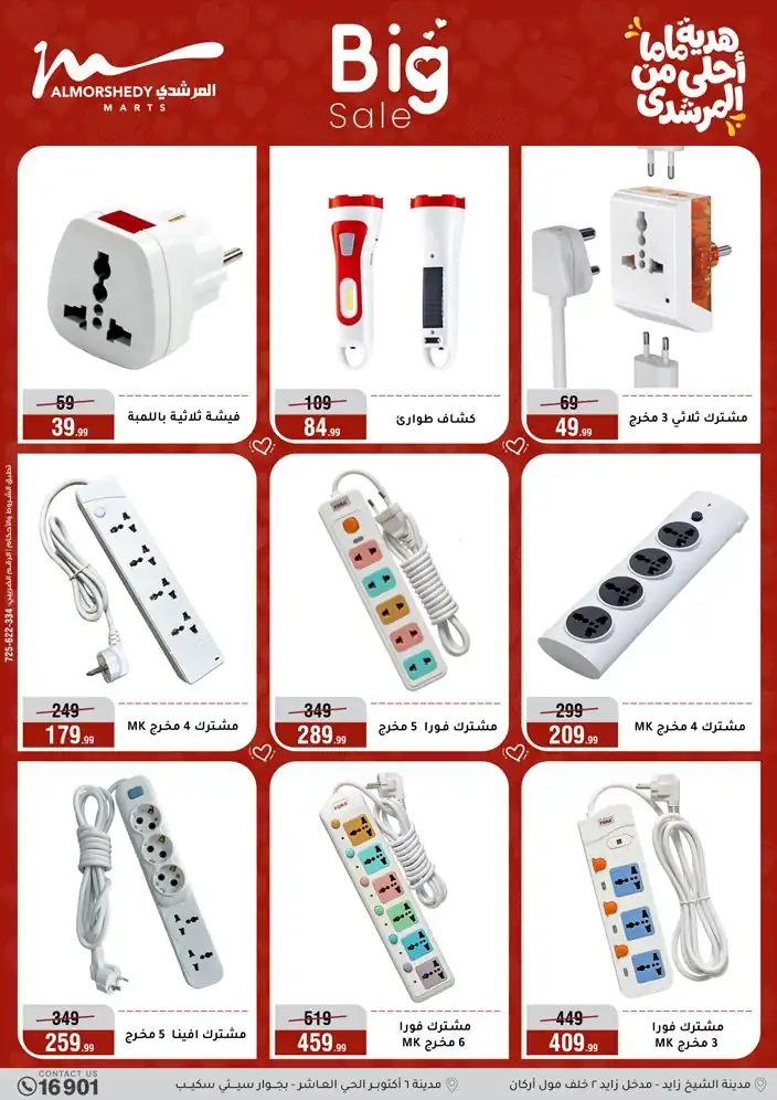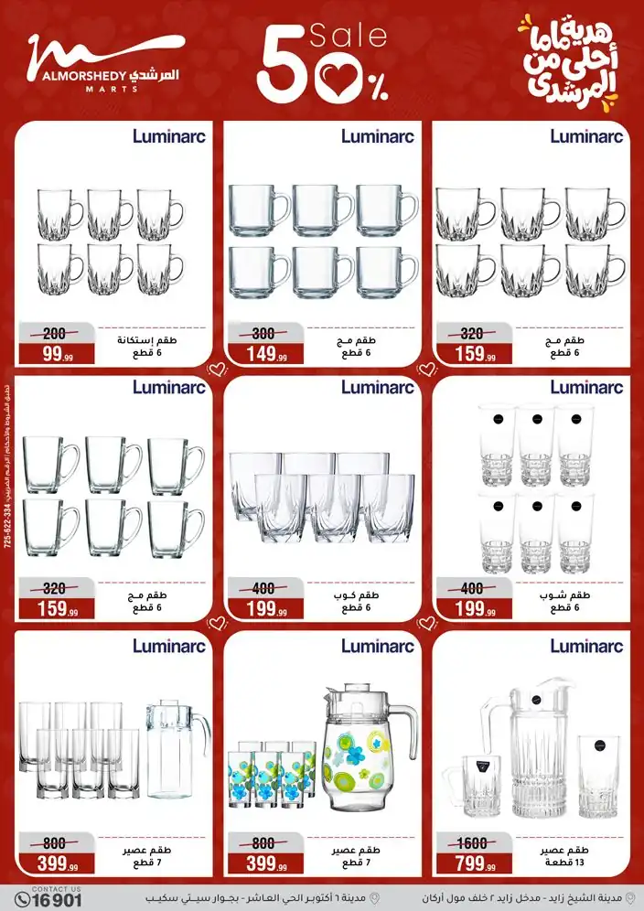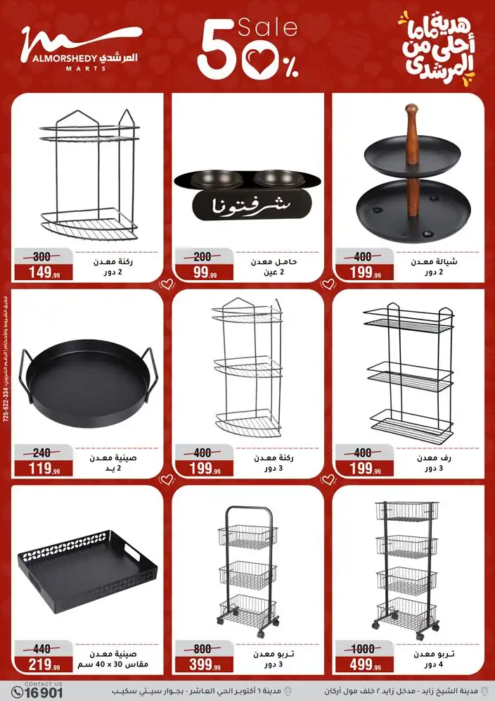 عروض جديدة من أسواق المرشدي  مع اكبر مهرجان للتخفيضات في مصر خصومات حتى 70%  وقسط براحتك بدون فوائد بأسعار العروض المخفضة على 12 شهر لحاملي بطاقة ائتمان CIB أو قسط براحتك مع VALU بدون مقدم حتى 60 شهر أو بدون مقدم وبدون فوائد مع نظام هاتريك وكمان النقل مجاني للقاهرة والجيزة والقليوبية على قسم الأجهزة الكهربائية والموبيليا والمراتب ( تطبق شروط المكان ) خصومات على جميع الأقسام أدوات منزلية – اجهزة كهربائية – مفروشات – موبيليا – نجف – سجاد – مراتب – ملابس رجالي وحريمي وأطفالي ومستلزمات ولعب الأطفال وجاليري وأقسام تانية كتير استمتع بالتسوق في أسواق المرشدي مع أكتر من 12 قسم و أكثر من 10,000 منتج يعني كل اللي بتحلم بيه عند المرشدي هتلاقيه