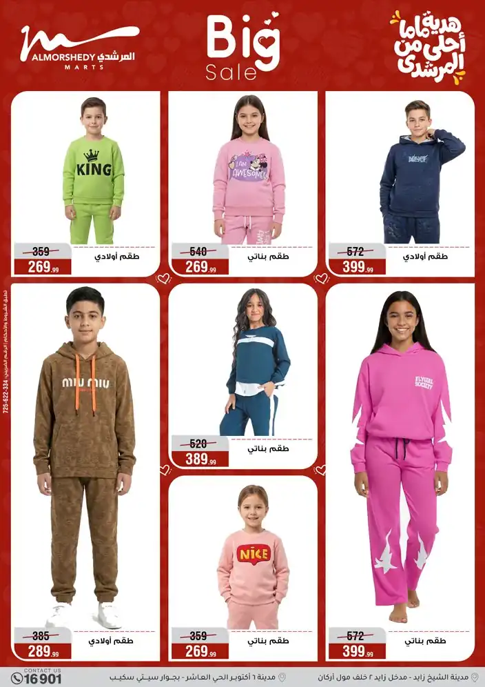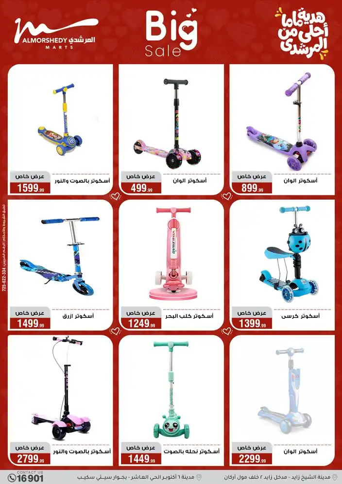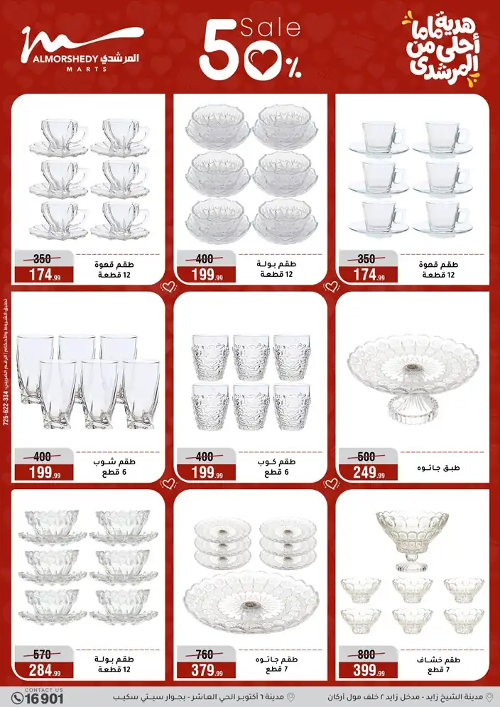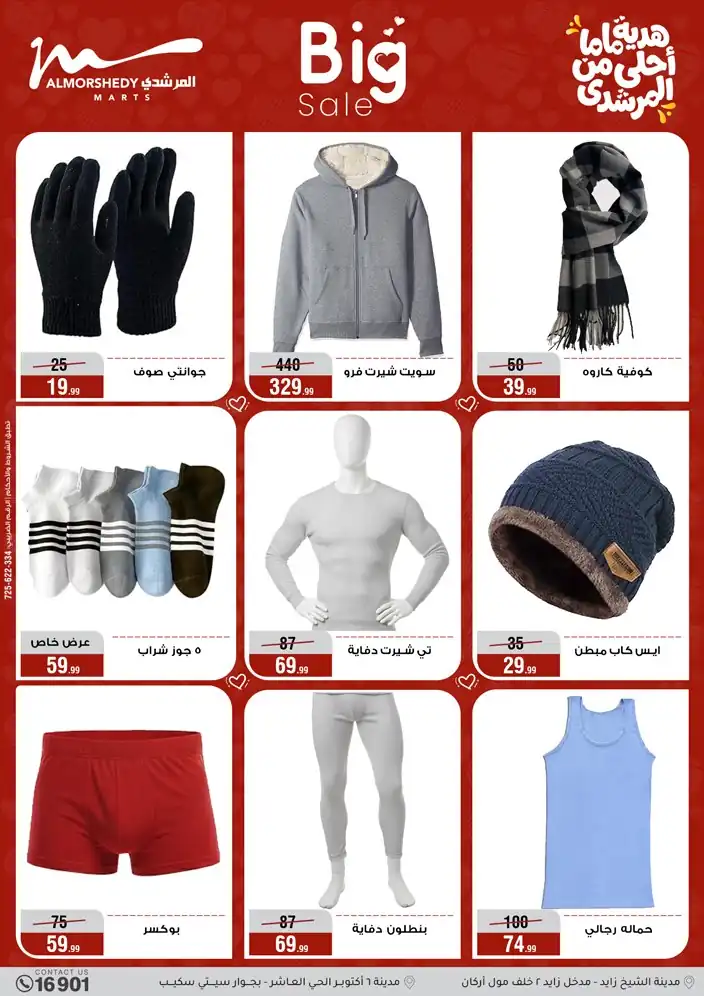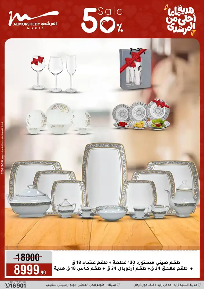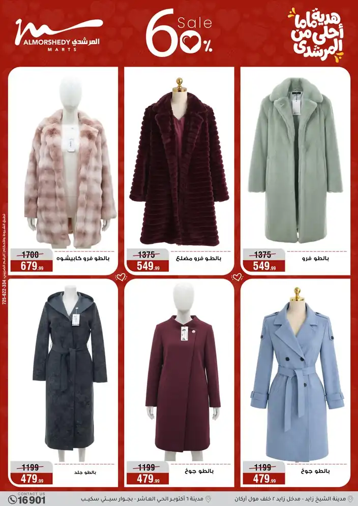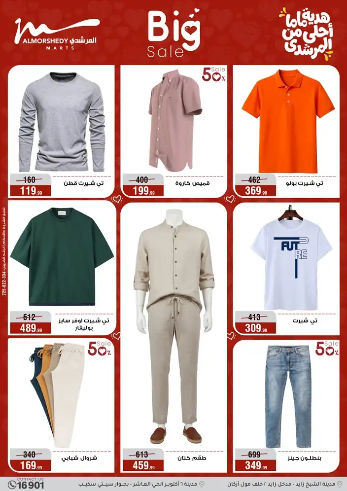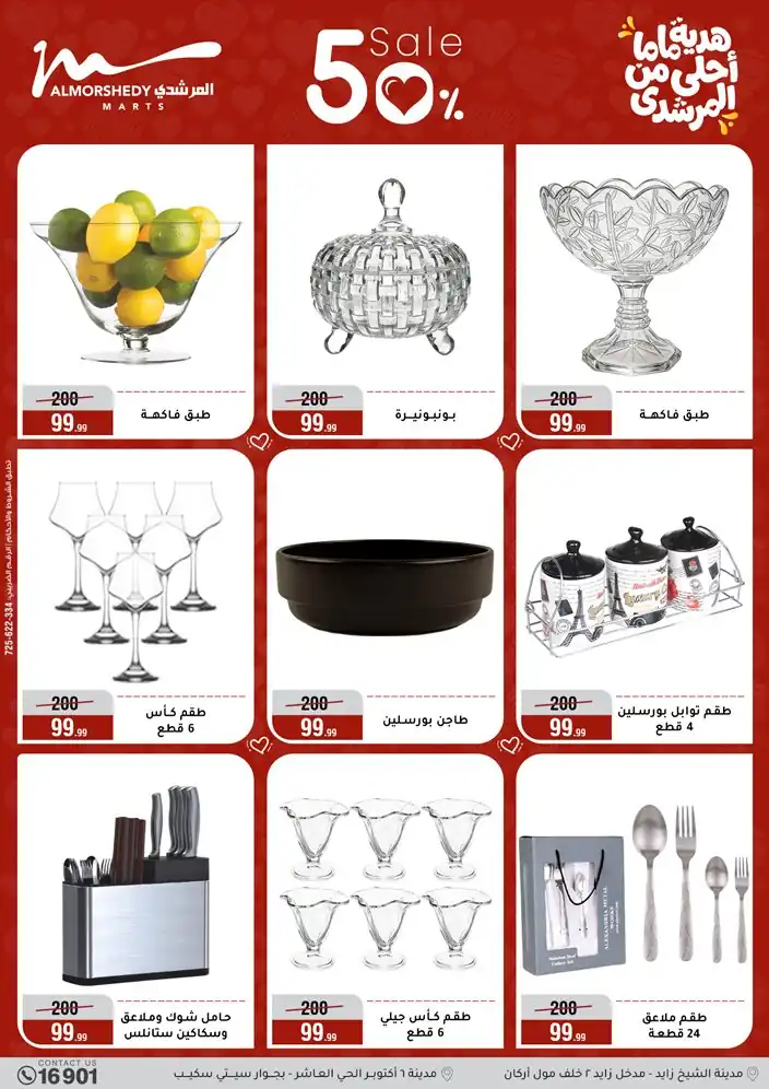 عروض جديدة من أسواق المرشدي  مع اكبر مهرجان للتخفيضات في مصر خصومات حتى 70%  وقسط براحتك بدون فوائد بأسعار العروض المخفضة على 12 شهر لحاملي بطاقة ائتمان CIB أو قسط براحتك مع VALU بدون مقدم حتى 60 شهر أو بدون مقدم وبدون فوائد مع نظام هاتريك وكمان النقل مجاني للقاهرة والجيزة والقليوبية على قسم الأجهزة الكهربائية والموبيليا والمراتب ( تطبق شروط المكان ) خصومات على جميع الأقسام أدوات منزلية – اجهزة كهربائية – مفروشات – موبيليا – نجف – سجاد – مراتب – ملابس رجالي وحريمي وأطفالي ومستلزمات ولعب الأطفال وجاليري وأقسام تانية كتير استمتع بالتسوق في أسواق المرشدي مع أكتر من 12 قسم و أكثر من 10,000 منتج يعني كل اللي بتحلم بيه عند المرشدي هتلاقيه