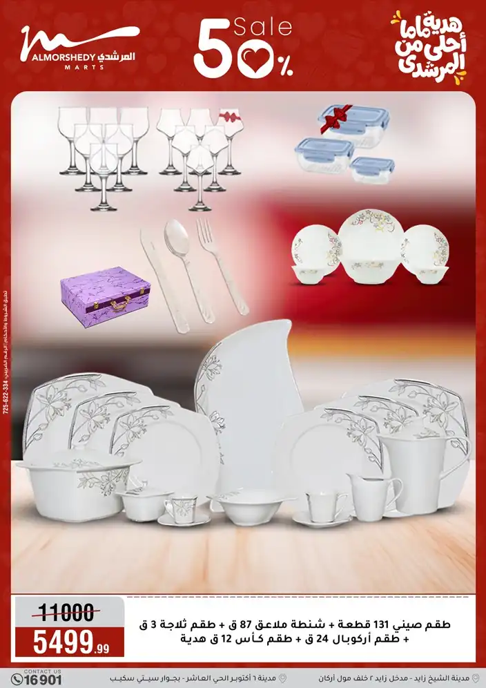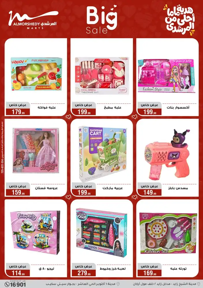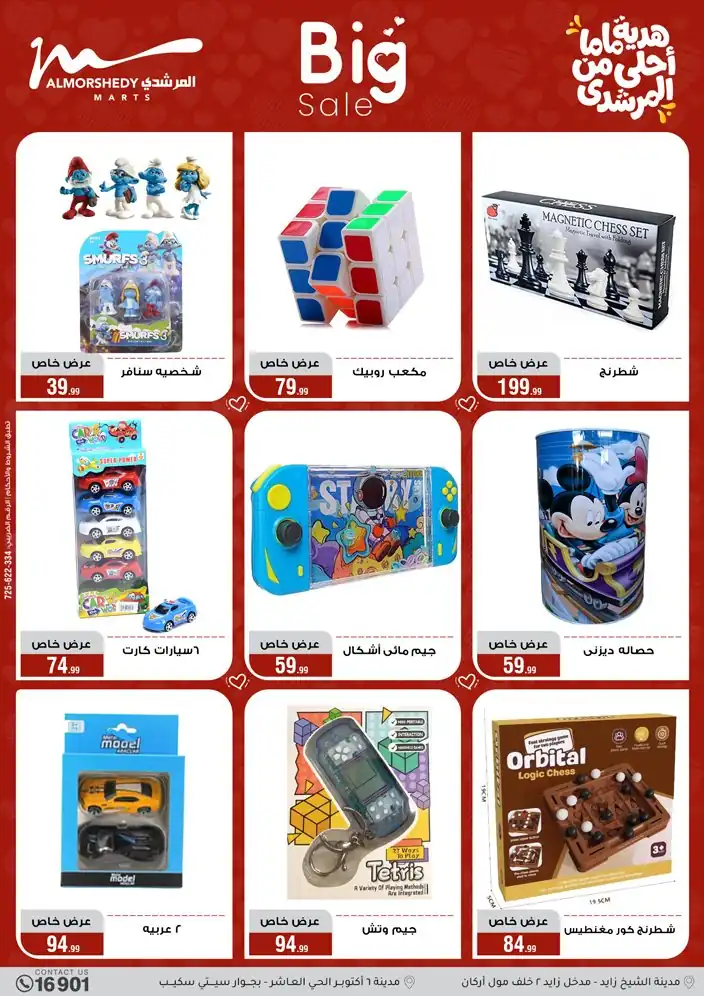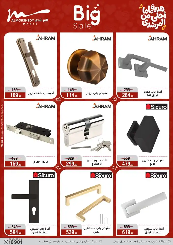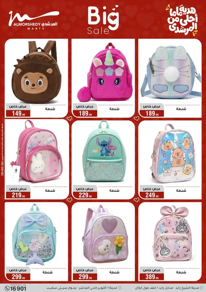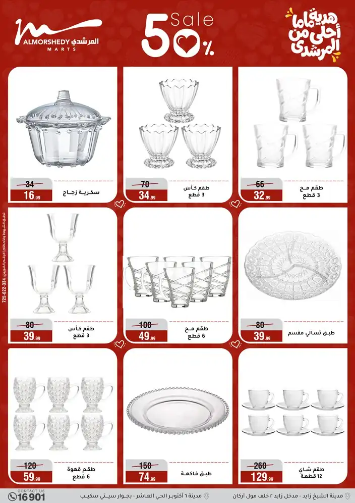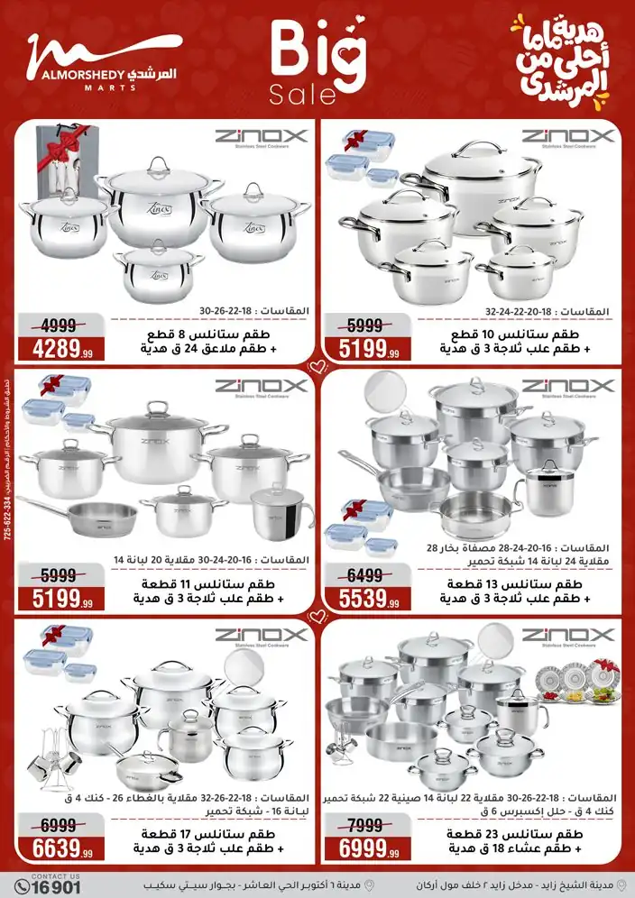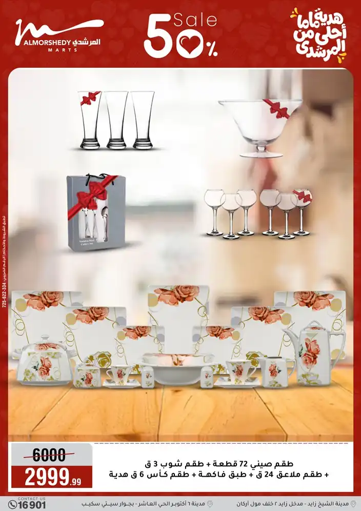 عروض جديدة من أسواق المرشدي  مع اكبر مهرجان للتخفيضات في مصر خصومات حتى 70%  وقسط براحتك بدون فوائد بأسعار العروض المخفضة على 12 شهر لحاملي بطاقة ائتمان CIB أو قسط براحتك مع VALU بدون مقدم حتى 60 شهر أو بدون مقدم وبدون فوائد مع نظام هاتريك وكمان النقل مجاني للقاهرة والجيزة والقليوبية على قسم الأجهزة الكهربائية والموبيليا والمراتب ( تطبق شروط المكان ) خصومات على جميع الأقسام أدوات منزلية – اجهزة كهربائية – مفروشات – موبيليا – نجف – سجاد – مراتب – ملابس رجالي وحريمي وأطفالي ومستلزمات ولعب الأطفال وجاليري وأقسام تانية كتير استمتع بالتسوق في أسواق المرشدي مع أكتر من 12 قسم و أكثر من 10,000 منتج يعني كل اللي بتحلم بيه عند المرشدي هتلاقيه