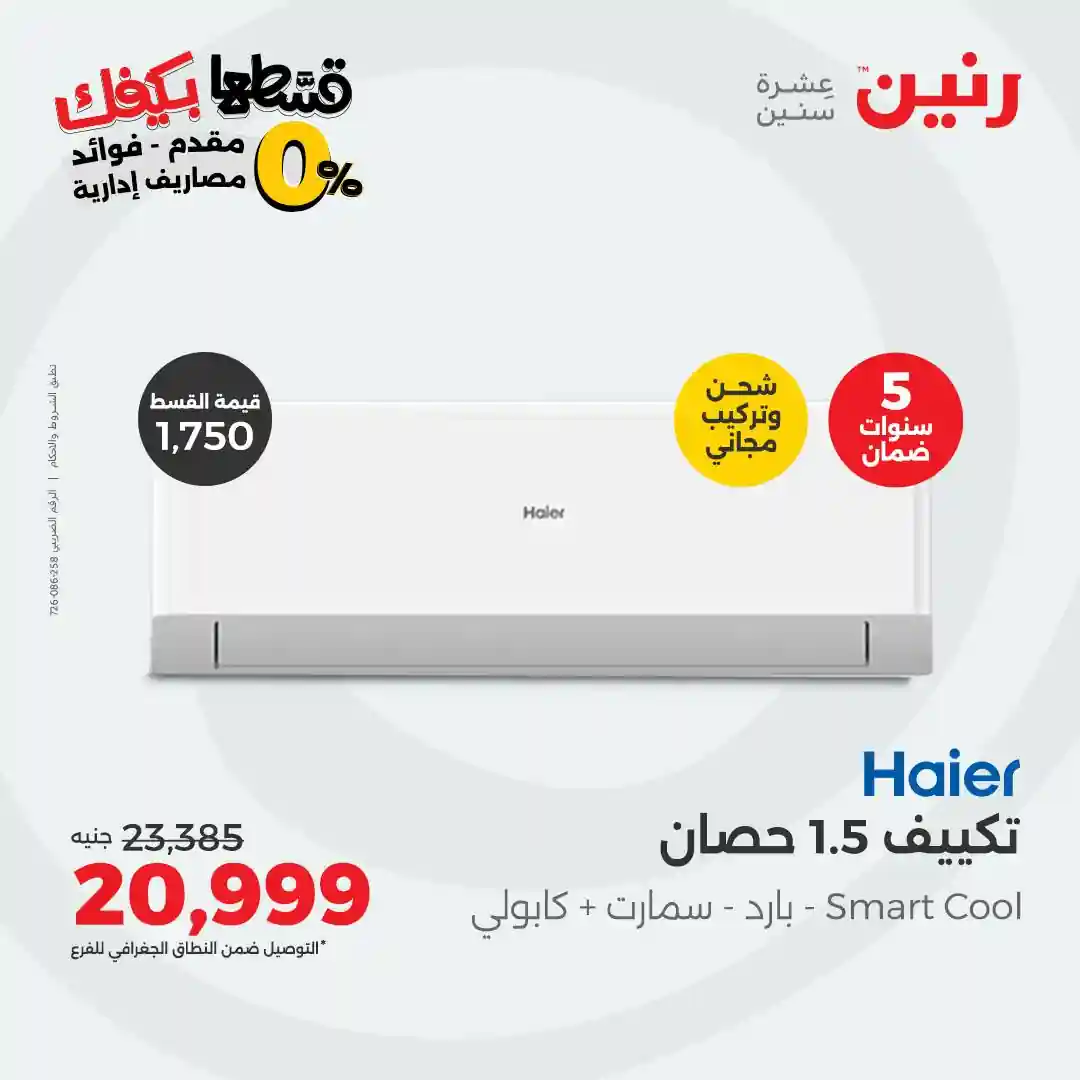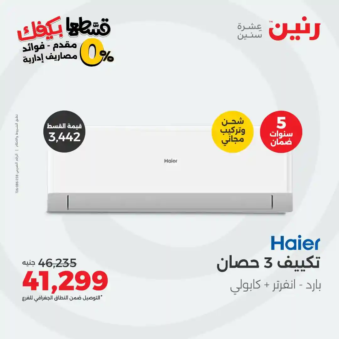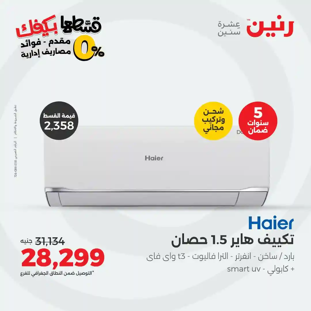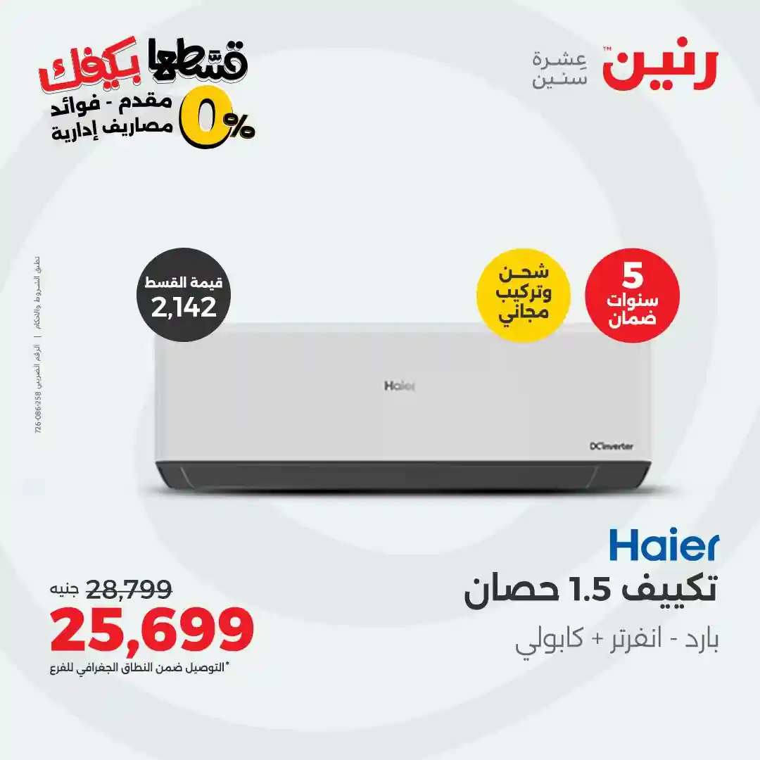عروض رنين اليوم 21 اكتوبر حتى الجمعة 31 اكتوبر 2025 خصومات تكييفات Haier بجميع فروع رنين