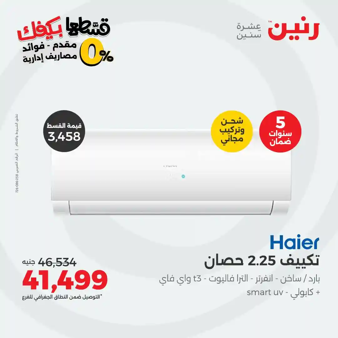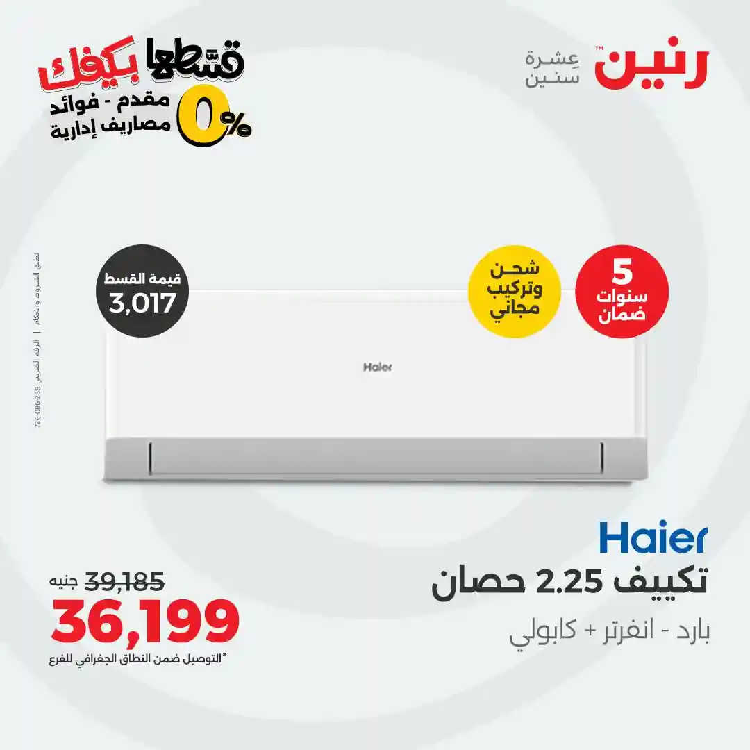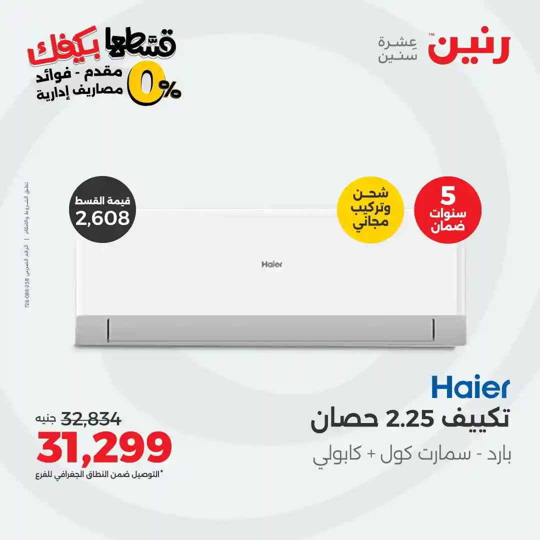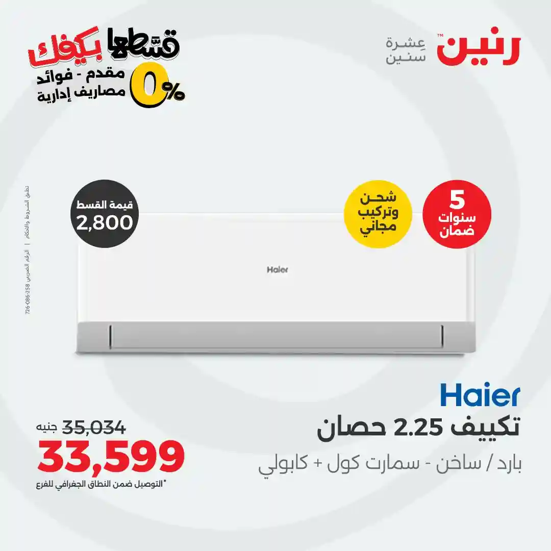 عروض رنين اليوم 21 اكتوبر حتى الجمعة 31 اكتوبر 2025 خصومات تكييفات Haier بجميع فروع رنين
