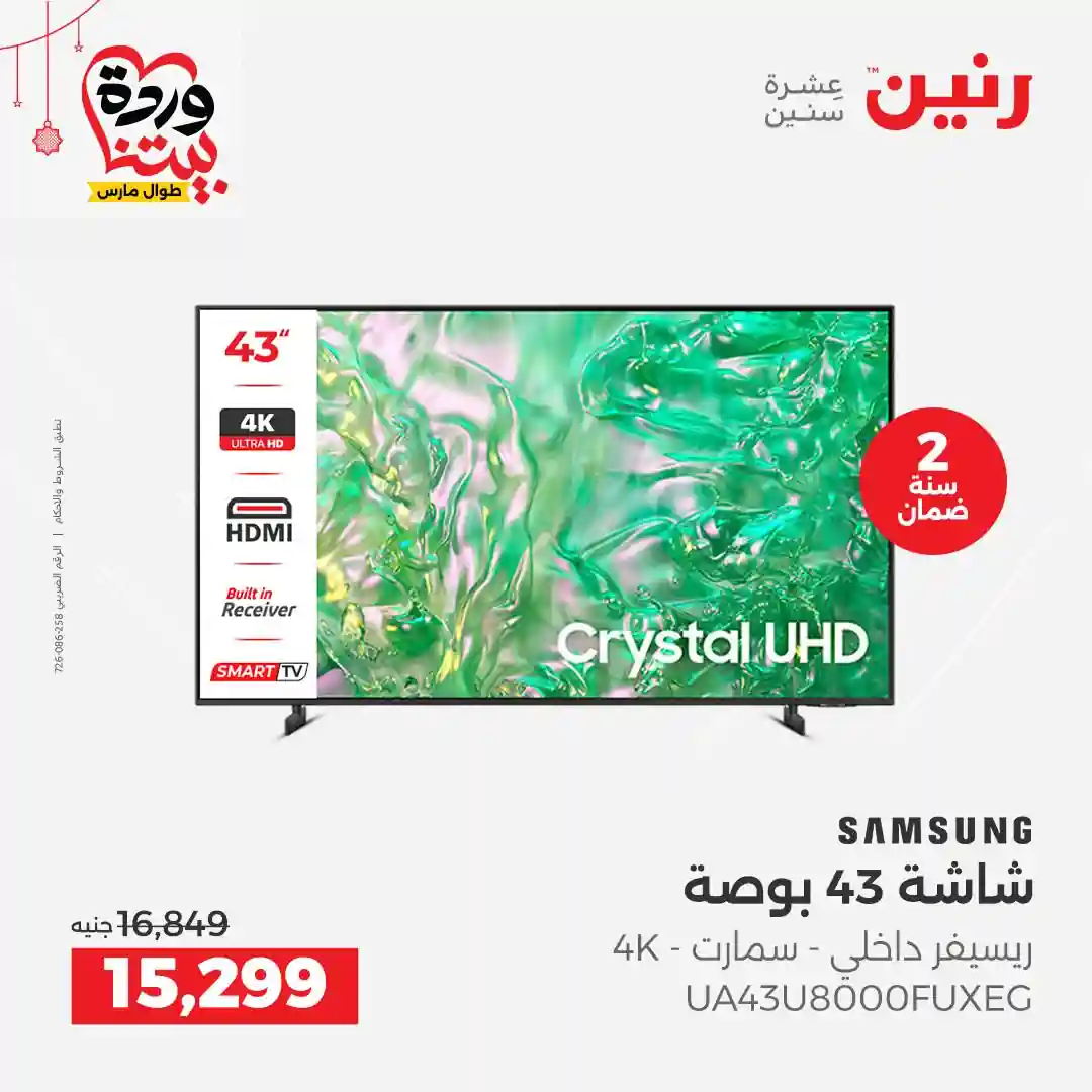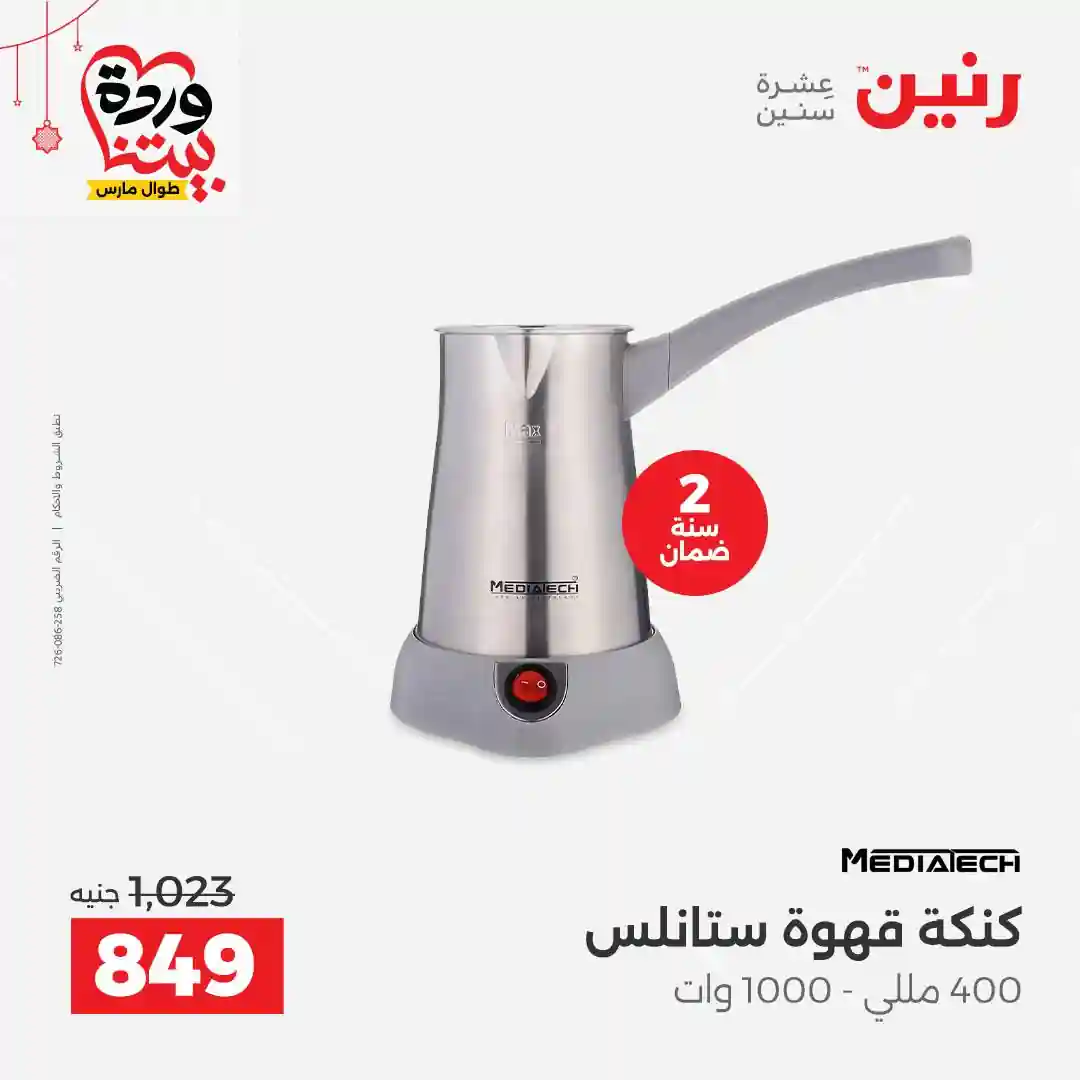 عروض رنين اليوم الاحد 22 حتى الاربعاء 25 مارس 2026 للأجهزة الكهربائية بجميع فروع رنين