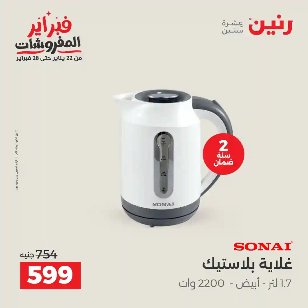 عروض رنين اليوم الاحد و الاثنين 1 و 2 فبراير 2026 للأجهزة الكهربائية بجميع فروع رنين