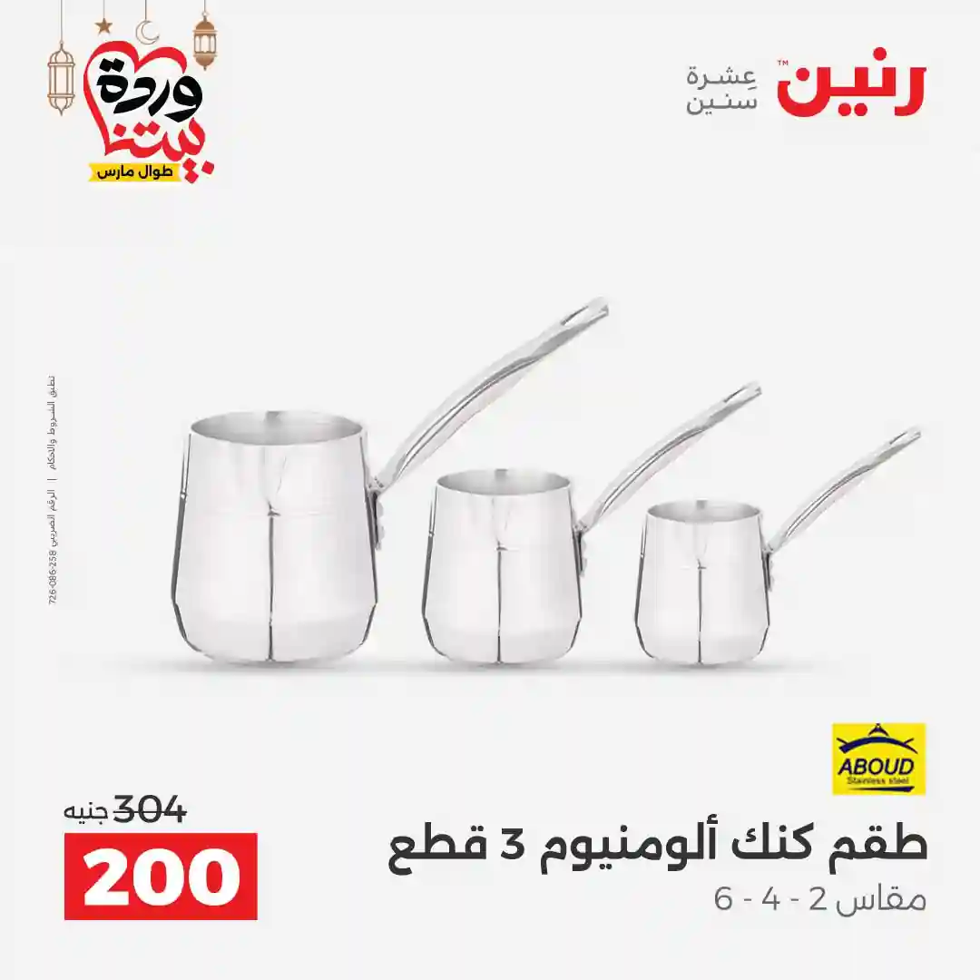 عروض رنين اليوم الاحد و الاثنين 1 و 2 مارس 2026 للأدوات المنزلية بجميع فروع رنين