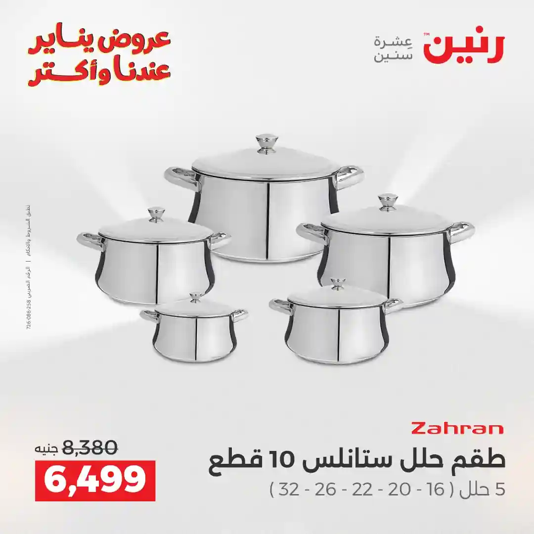 عروض رنين اليوم الاحد و الاثنين 11 و 12 يناير 2026 للأدوات المنزلية بجميع فروع رنين