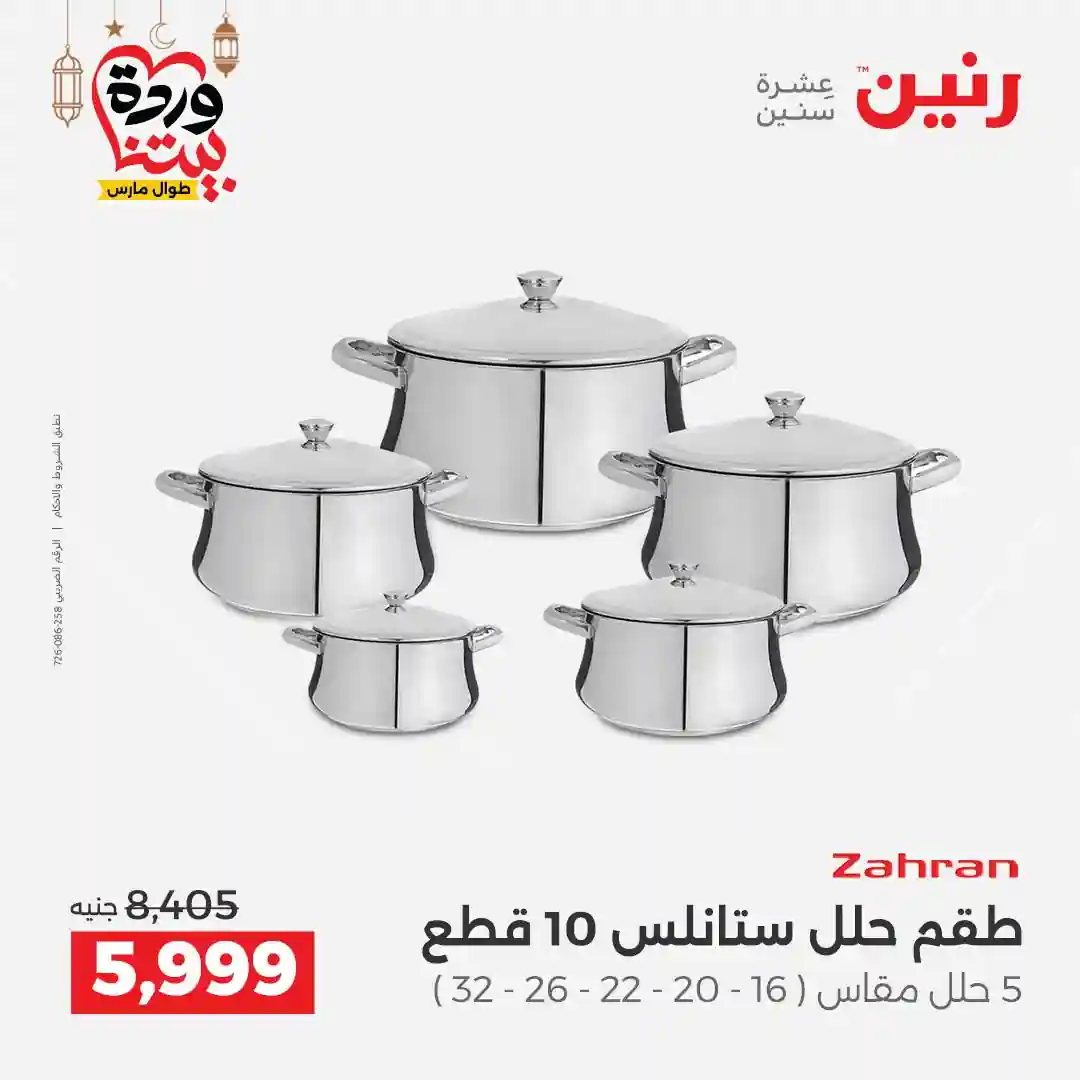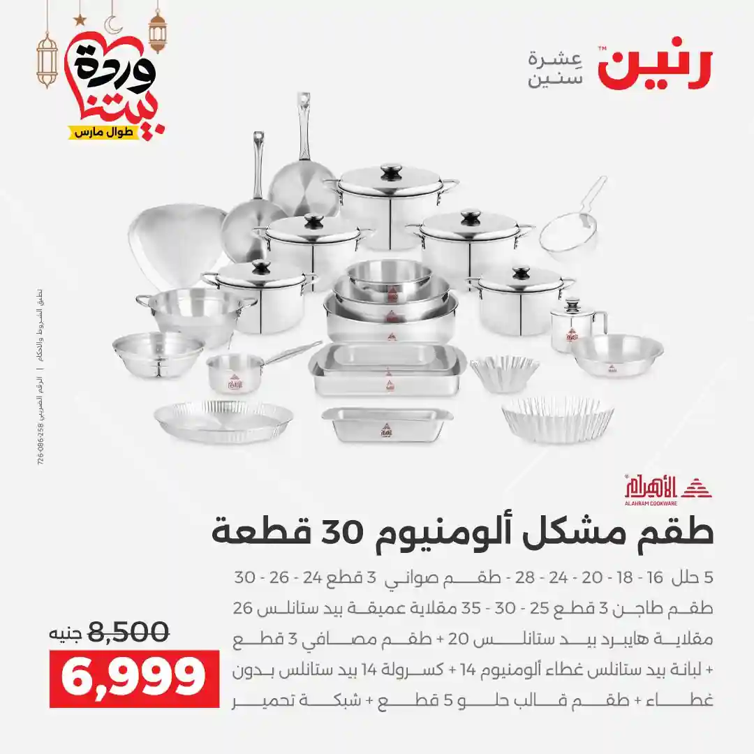 عروض رنين اليوم الاحد و الاثنين 15 و 16 مارس 2026 للأدوات المنزلية بجميع فروع رنين
