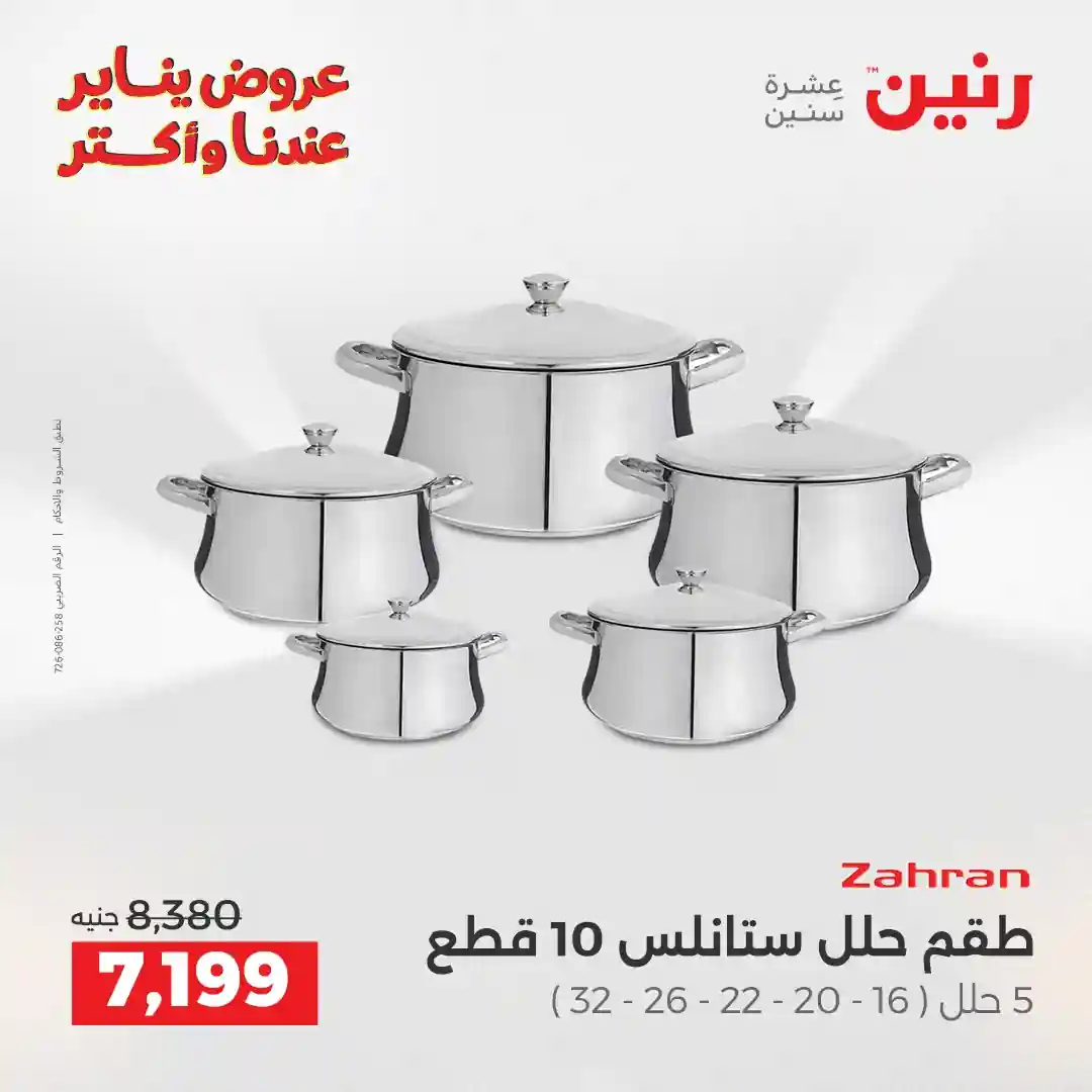 عروض رنين اليوم الاحد و الاثنين 18 و 19 يناير 2026 للأدوات المنزلية بجميع فروع رنين