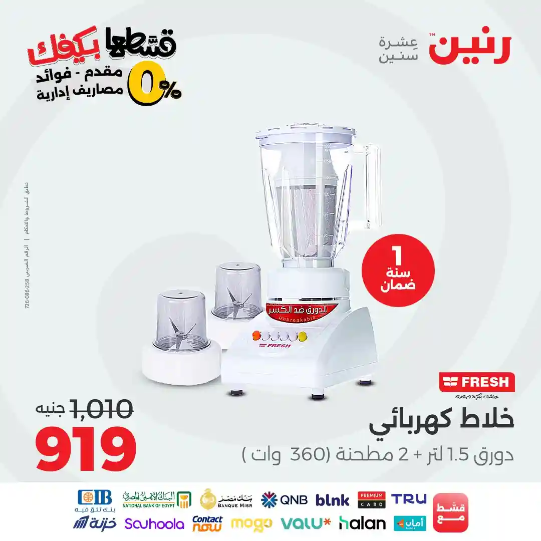 عروض رنين اليوم الاحد والاثنين 19 و 20 اكتوبر 2025 الاجهزة الكهربائية بجميع فروع رنين