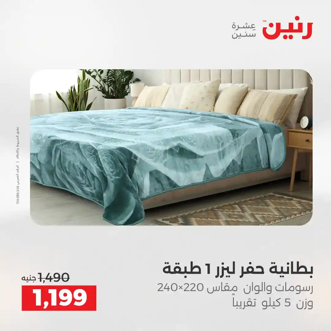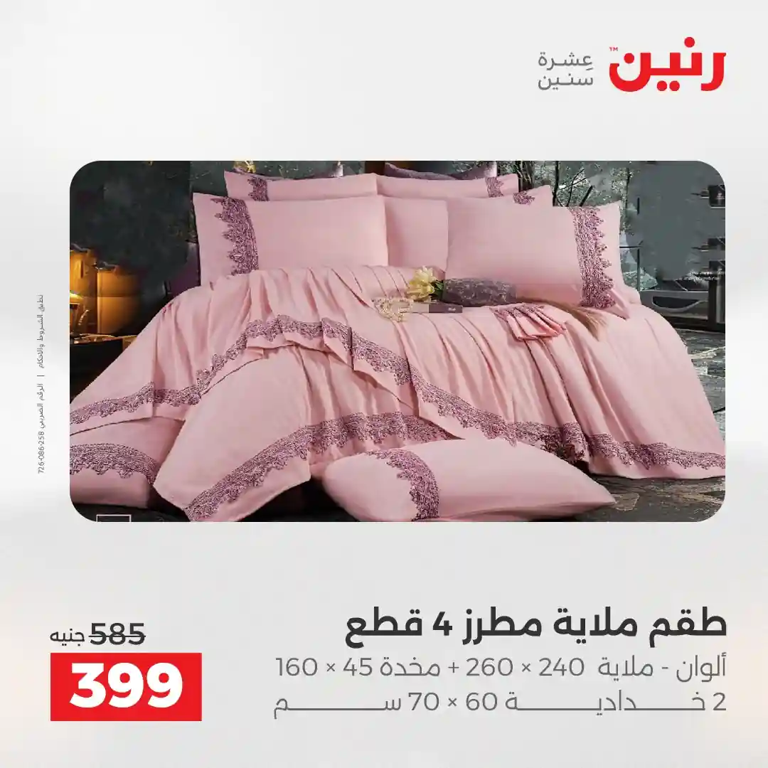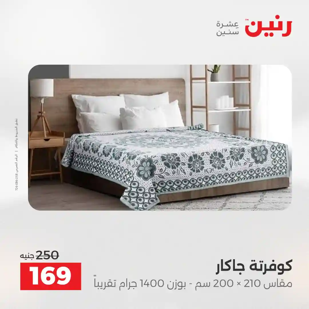 عروض رنين اليوم الاثنين 22 ديسمبر 2025 المفروشات والمنسوجات بجميع فروع رنين