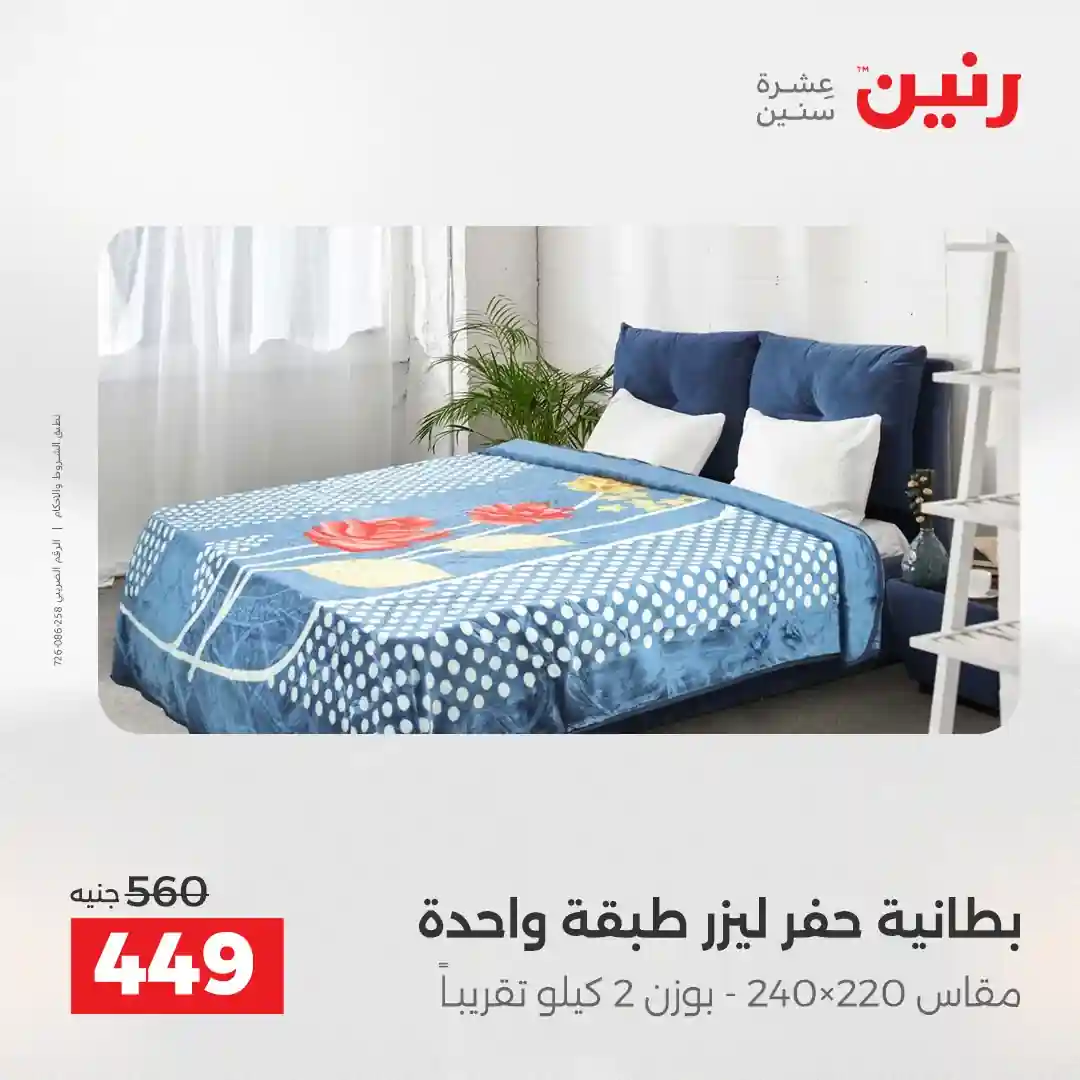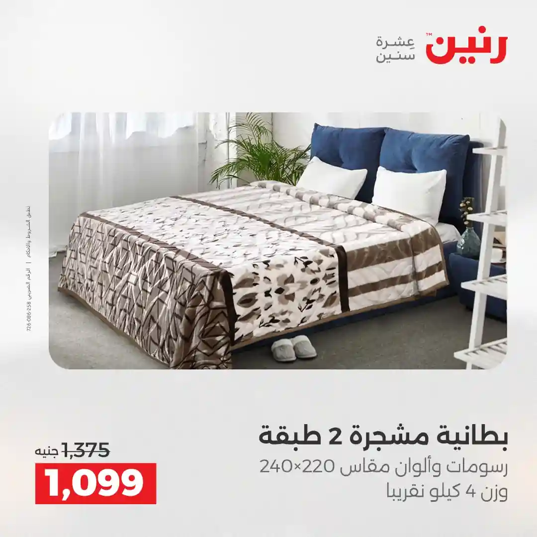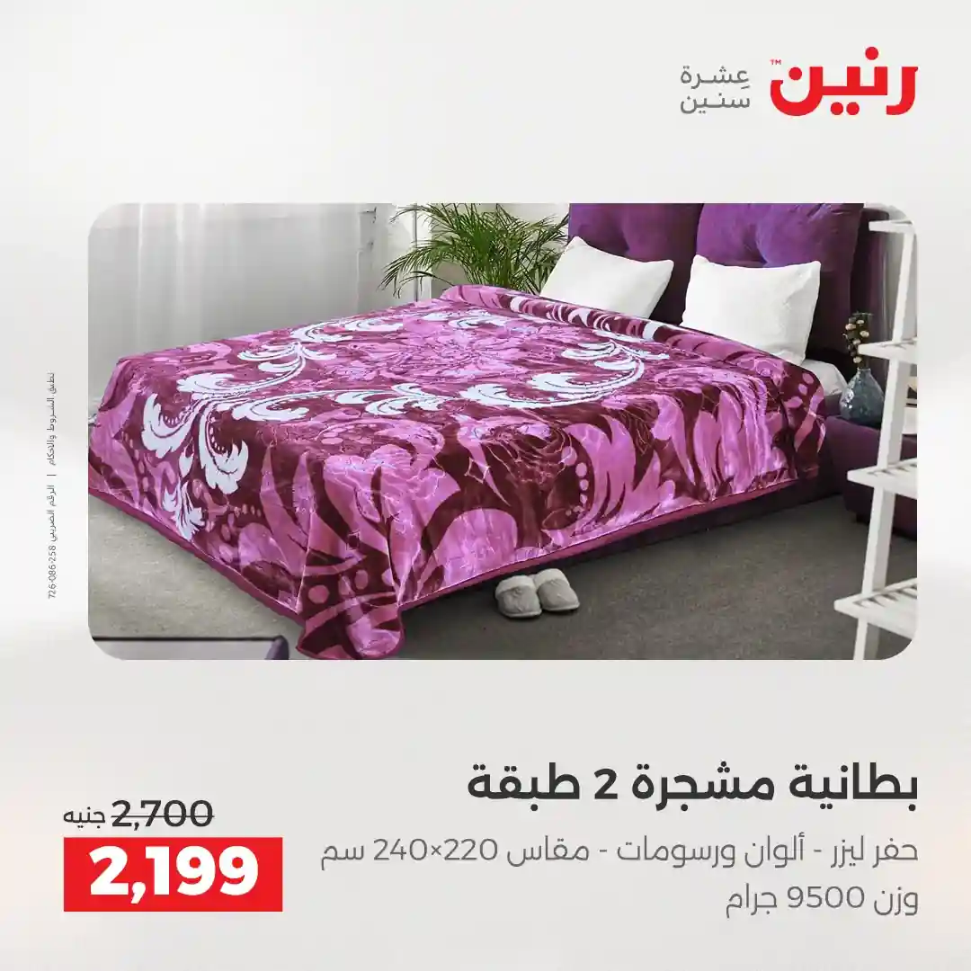 عروض رنين اليوم الاثنين 22 ديسمبر 2025 المفروشات والمنسوجات بجميع فروع رنين