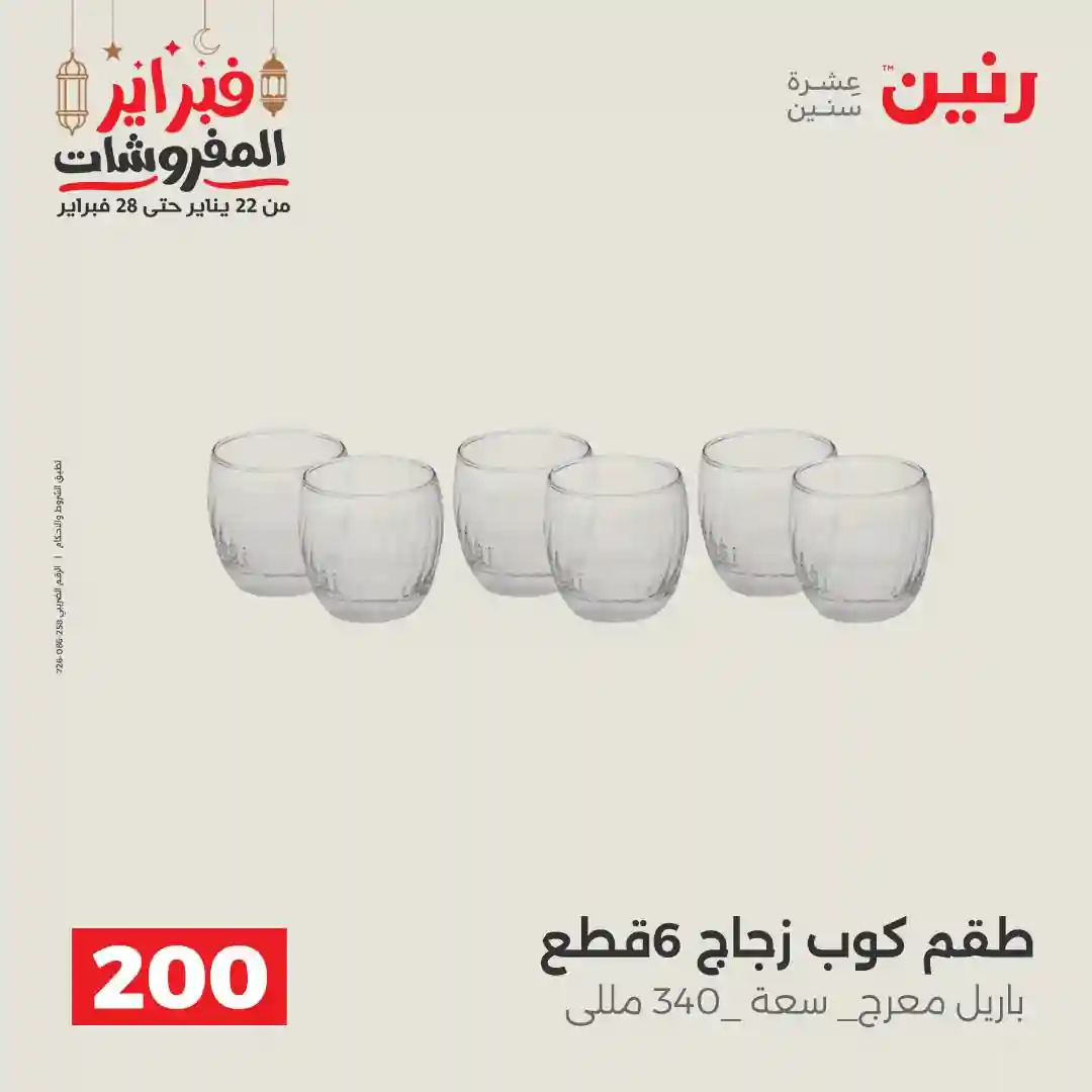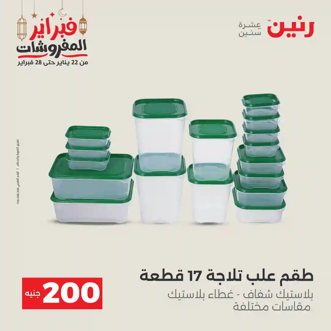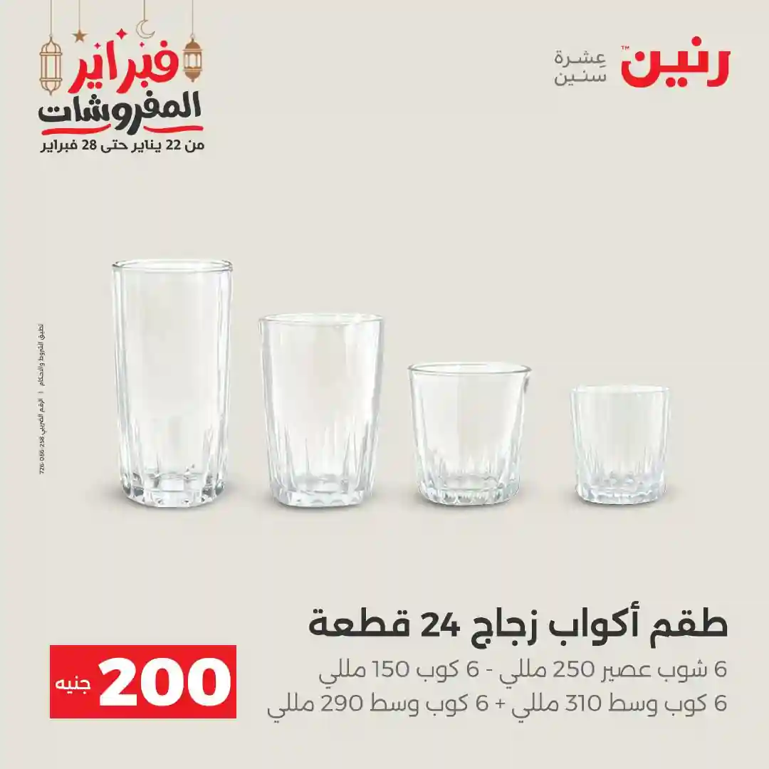 عروض رنين اليوم الاحد و الاثنين 22 و 23 فبراير 2026 مهرجان الـ 200 جنيه بجميع فروع رنين