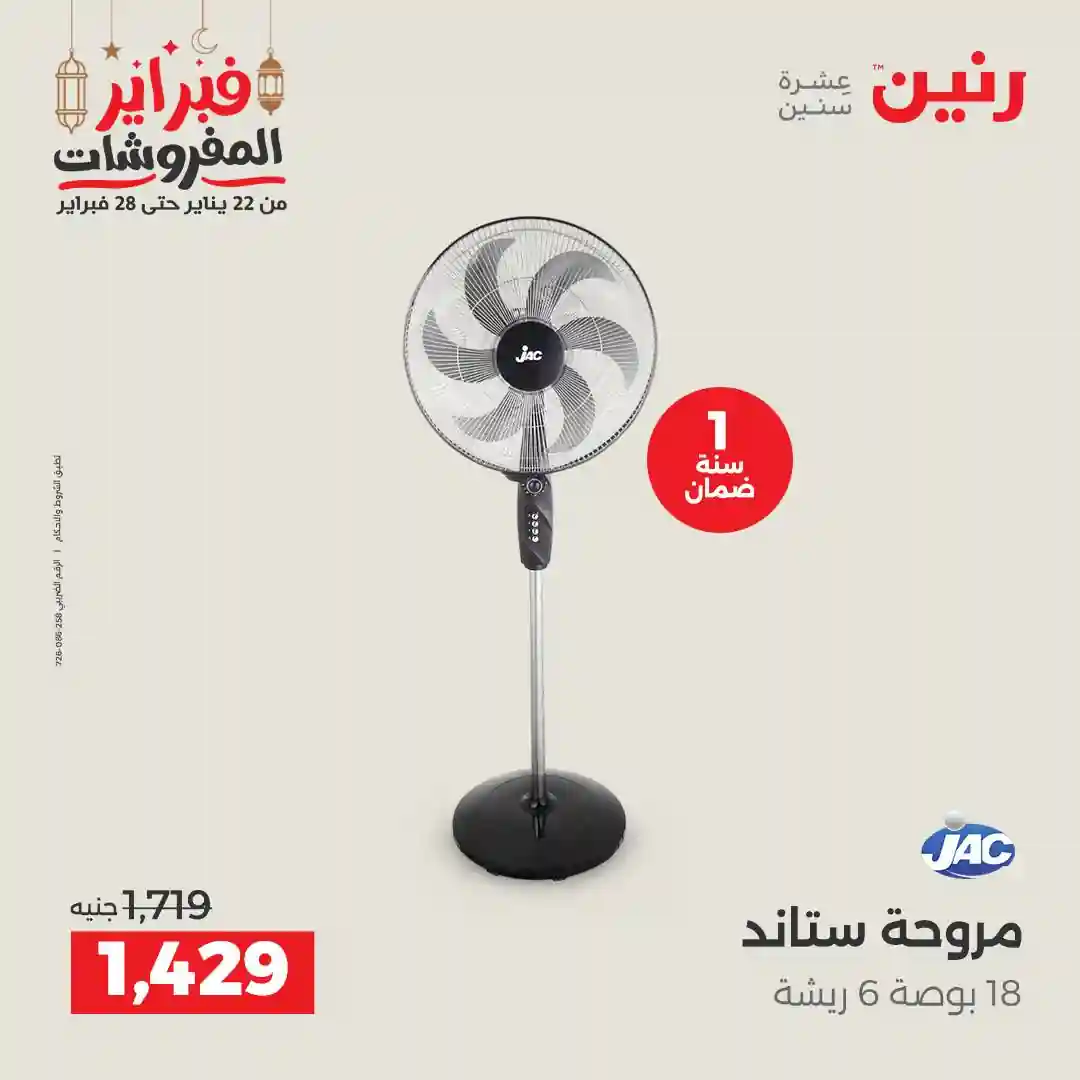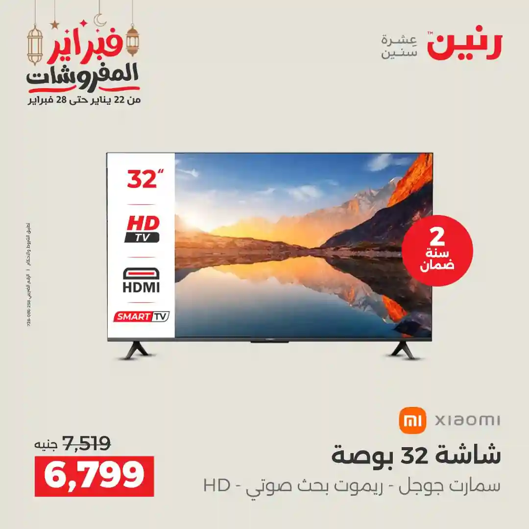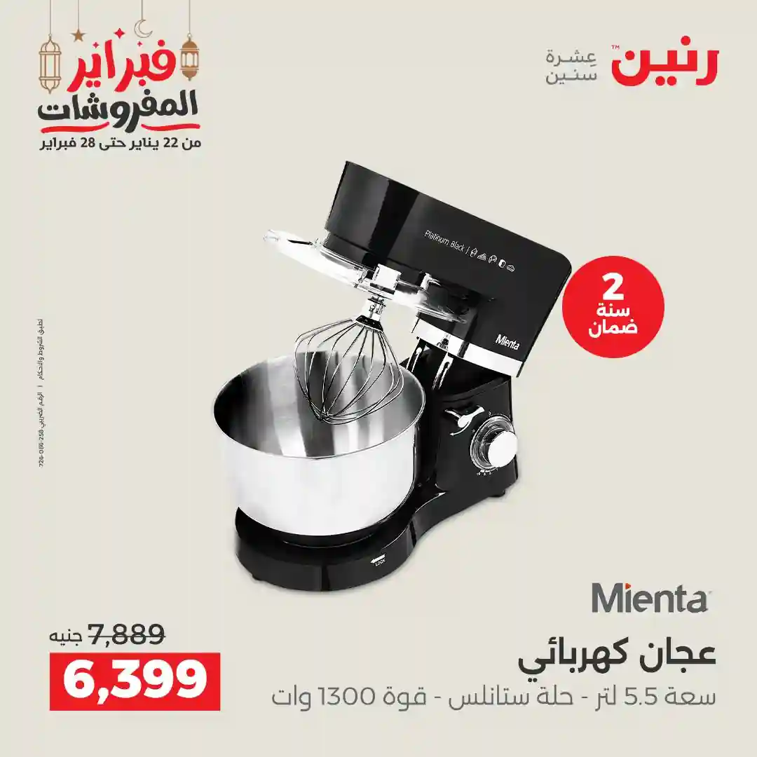 عروض رنين اليوم الاحد و الاثنين 22 و 23 فبراير 2026 للأجهزة الكهربائية بجميع فروع رنين
