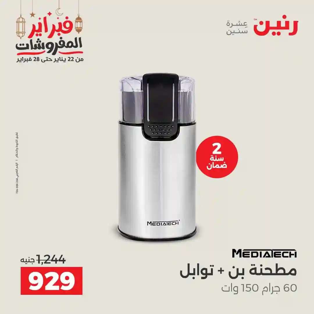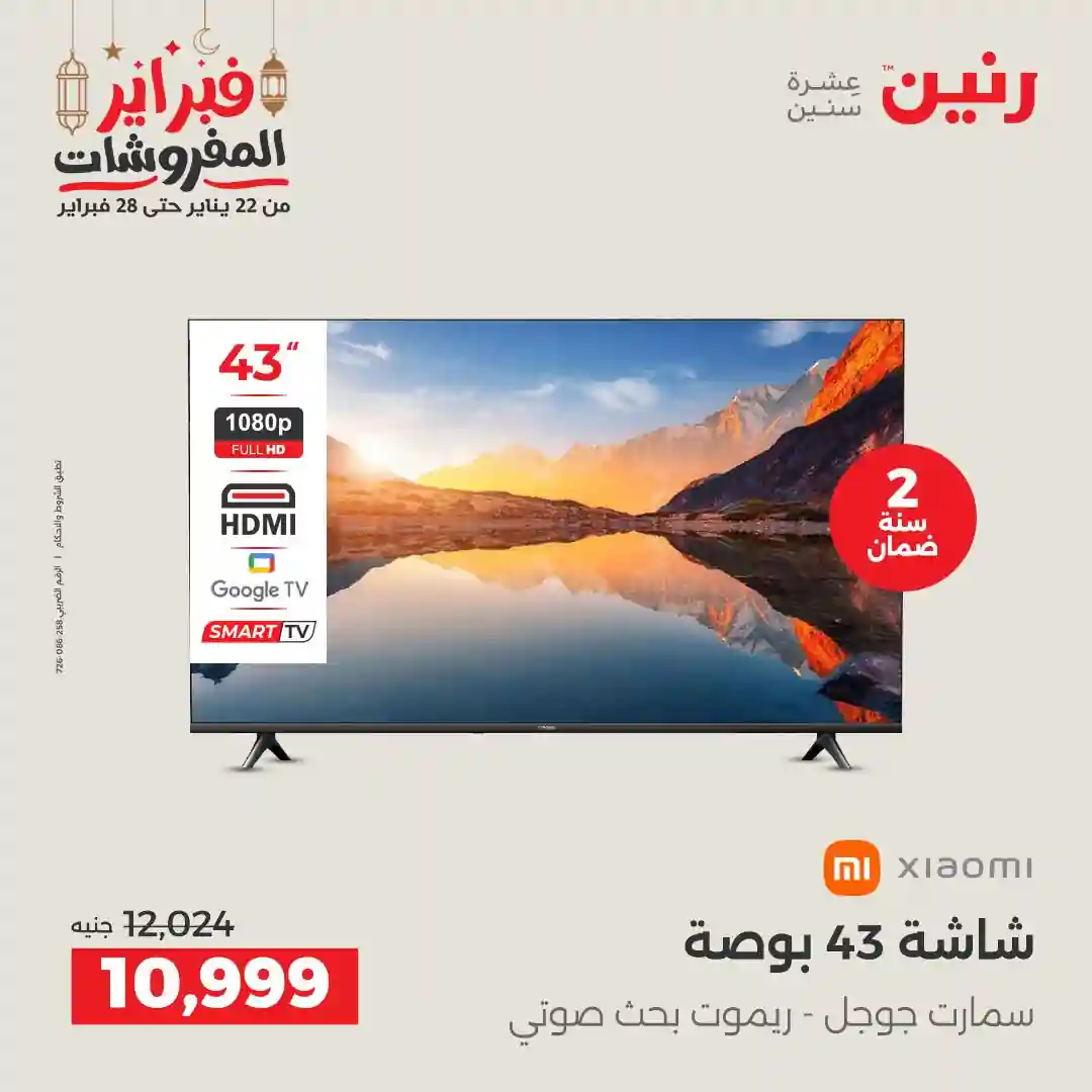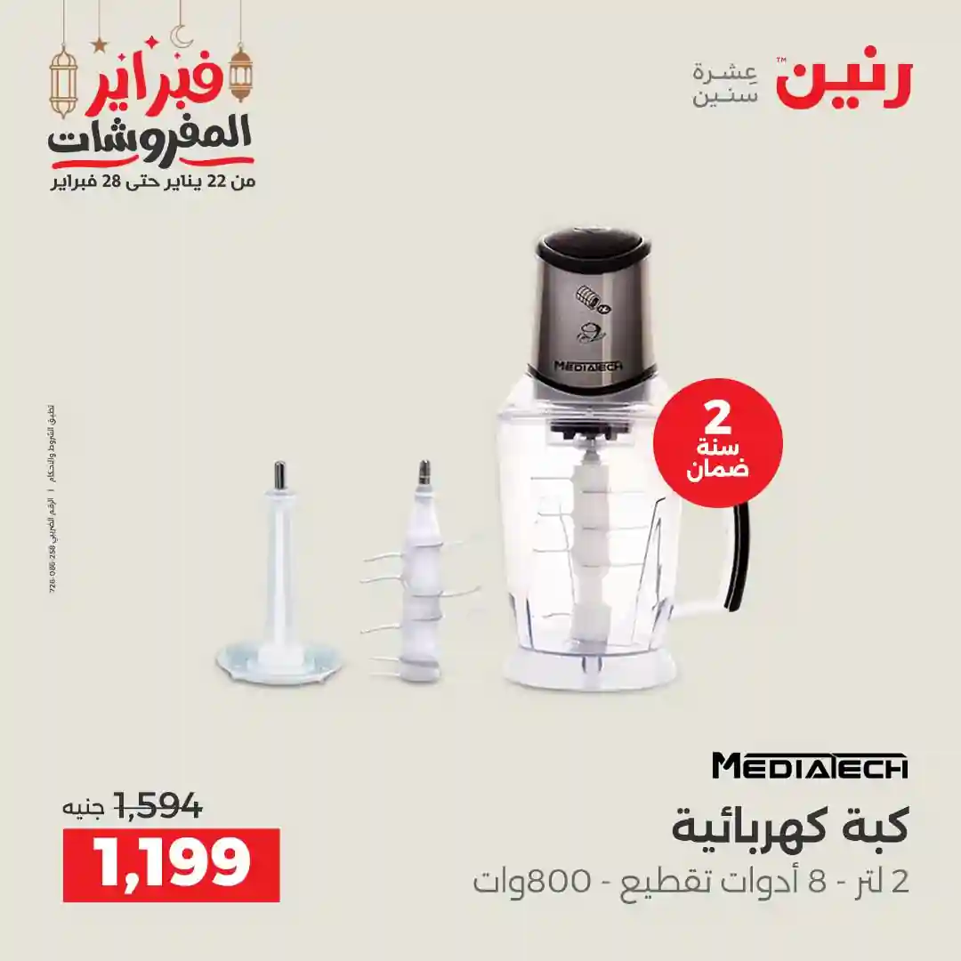 عروض رنين اليوم الاحد و الاثنين 22 و 23 فبراير 2026 للأجهزة الكهربائية بجميع فروع رنين