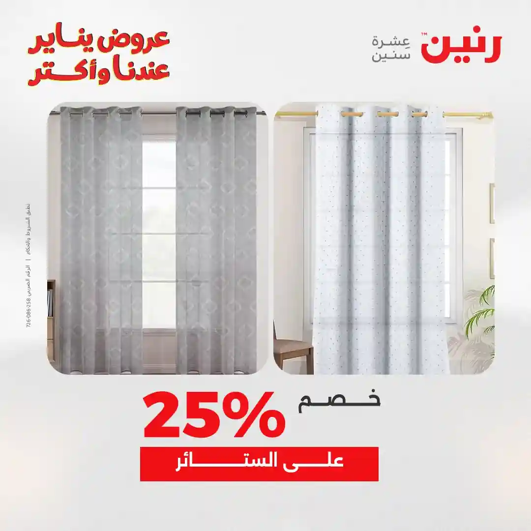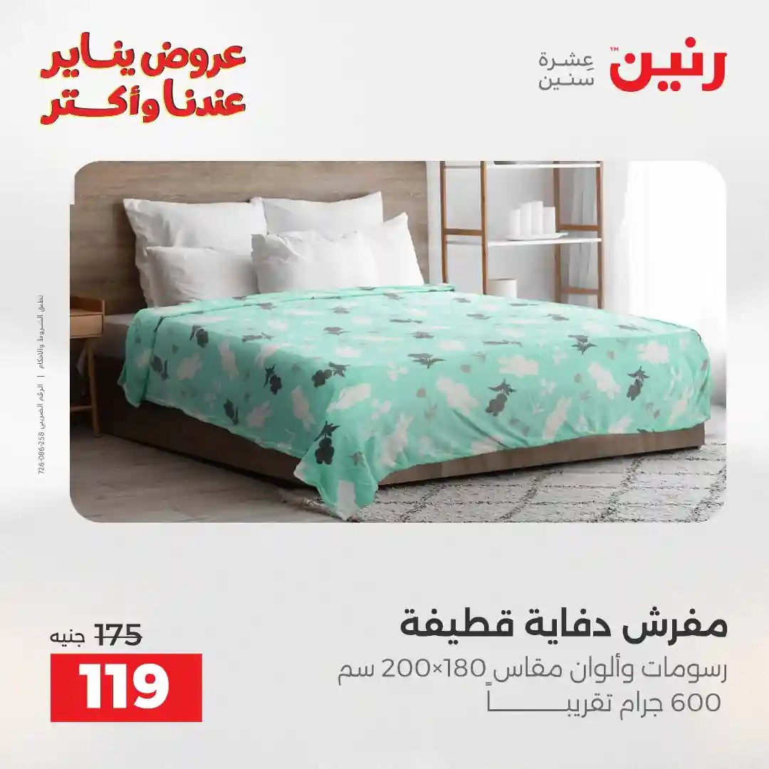 عروض رنين اليوم الاثنين 29 ديسمبر 2025 المفروشات والمنسوجات