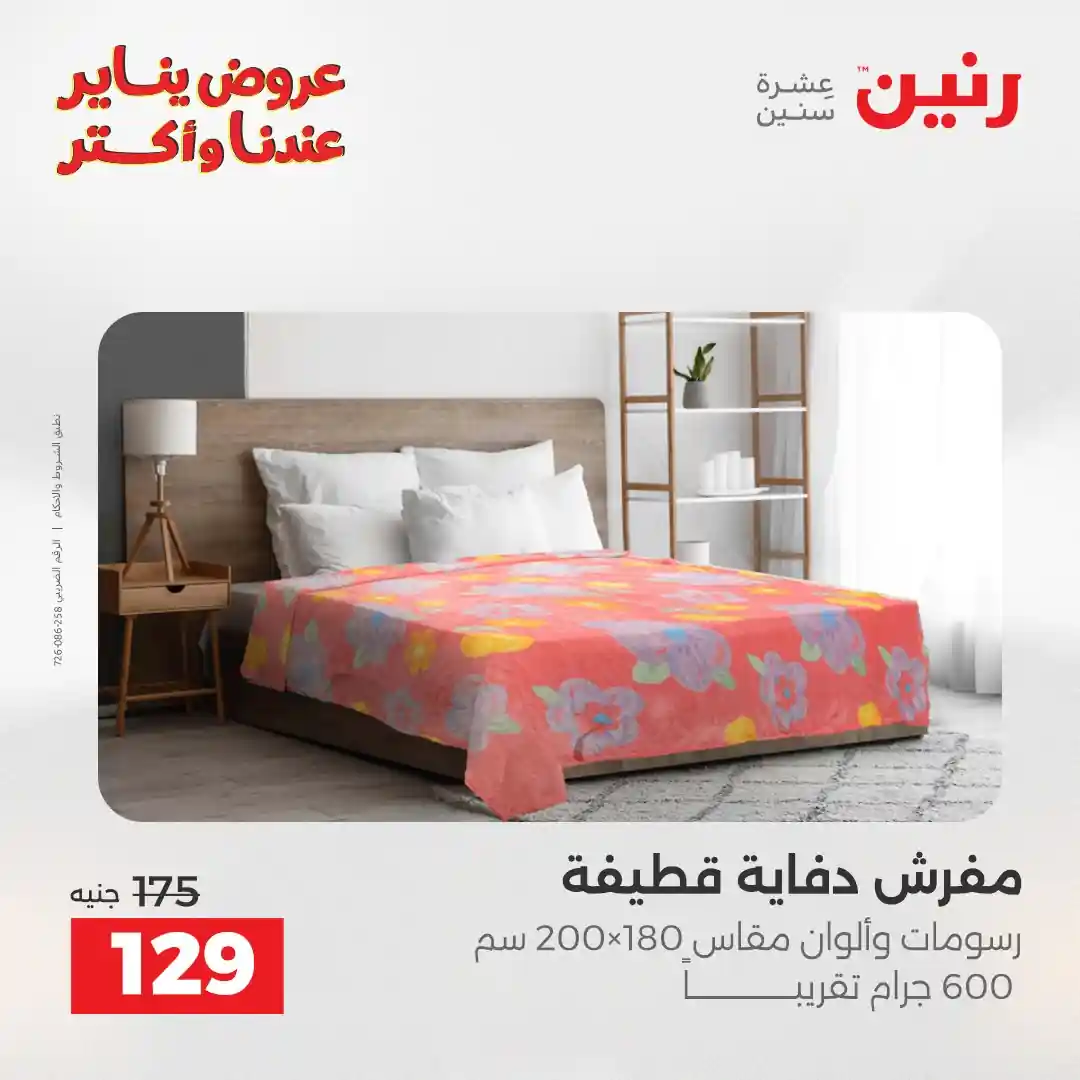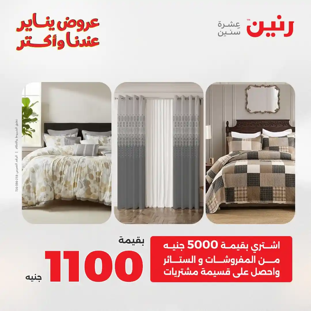 عروض رنين اليوم الاربعاء 31 ديسمبر 2025 المفروشات والمنسوجات بجميع فروع رنين