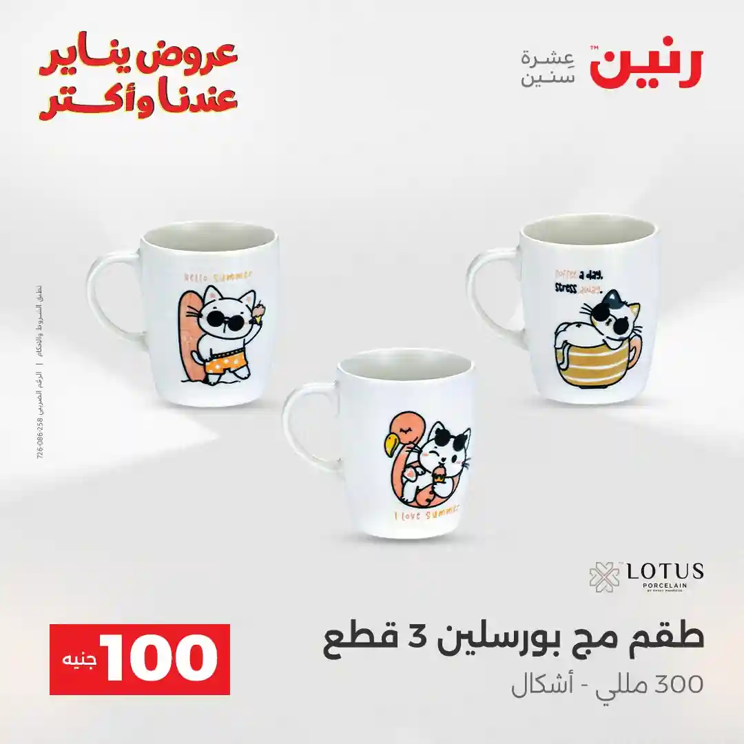 عروض رنين اليوم الثلاثاء والاربعاء 6 و 7 يناير 2026 مهرجان ال 100 جنيه بجميع فروع رنين