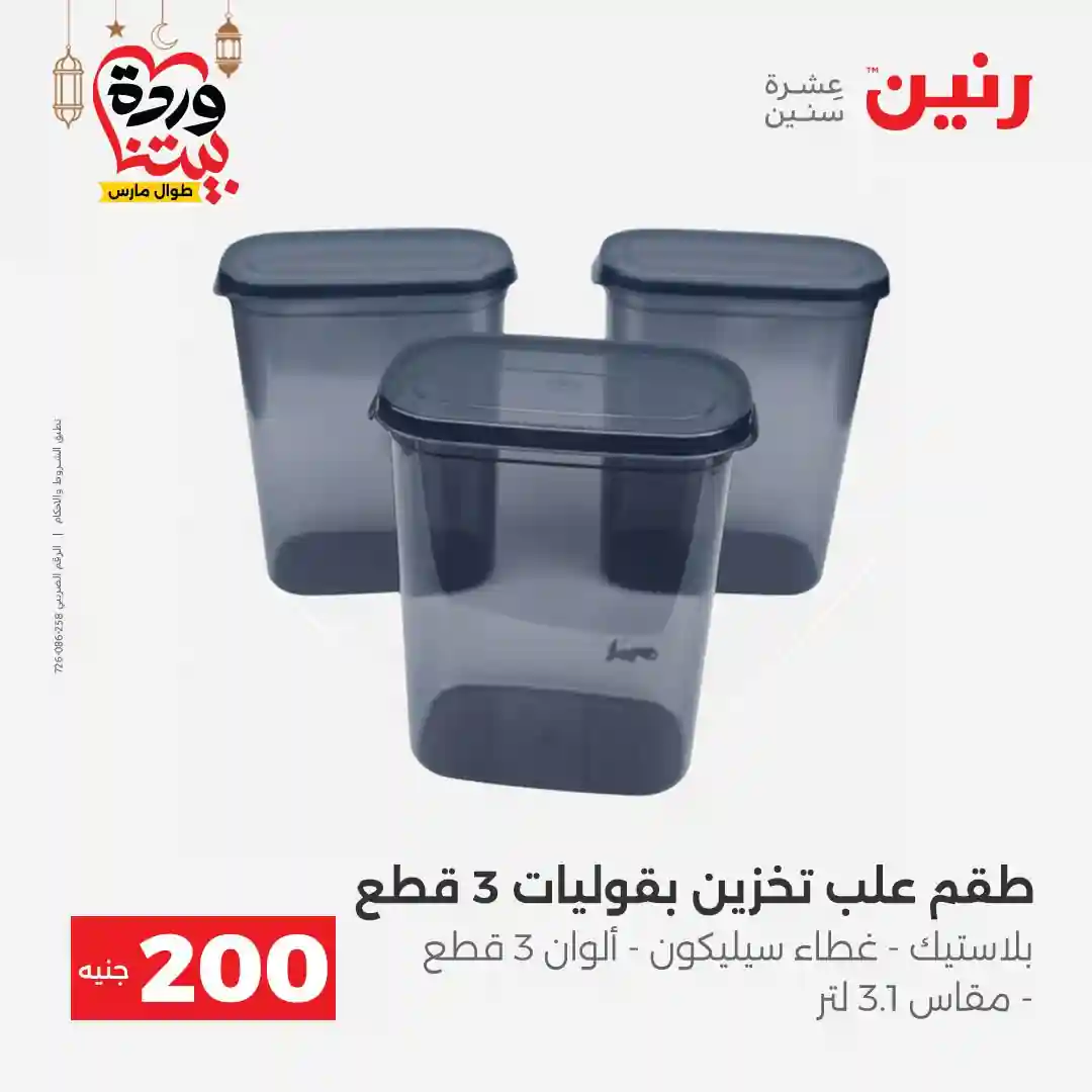 عروض رنين اليوم الاحد و الاثنين 8 و 9 مارس 2026 مهرجان الـ 200 جنيه بجميع فروع رنين