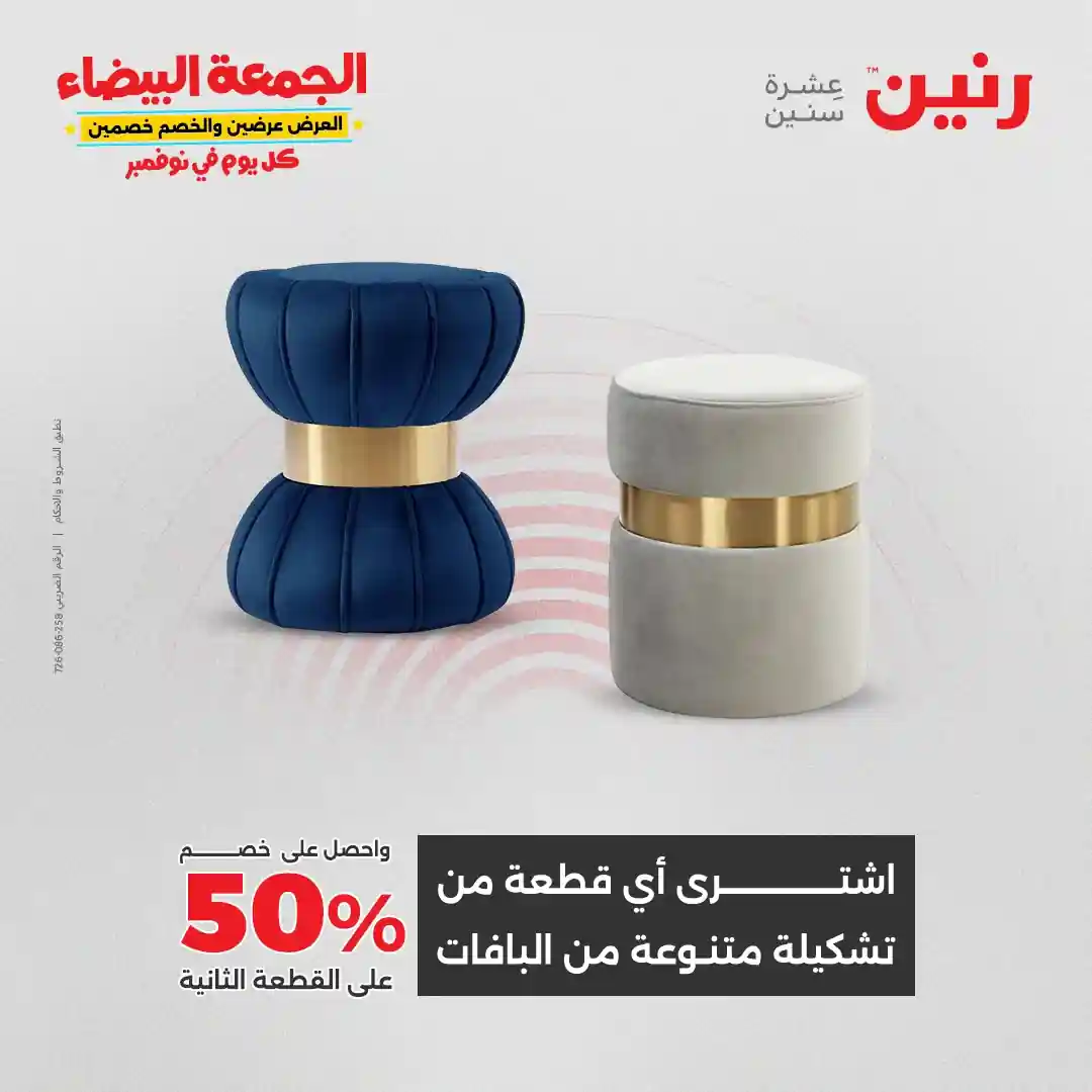 عروض رنين اليوم الاحد و الاثنين 9 و 10 نوفمبر 2025 المنسوجات والاثاث بجميع فروع رنين
